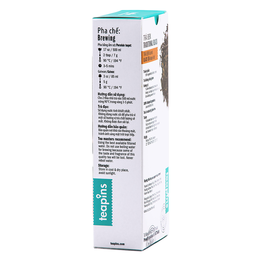 Trà Đen Truyền Thống Teapins được sản xuất từ 100% thành phần tự nhiên trà đen lá rời được tuyển chọn kỹ lưỡng, không chứa gluten.