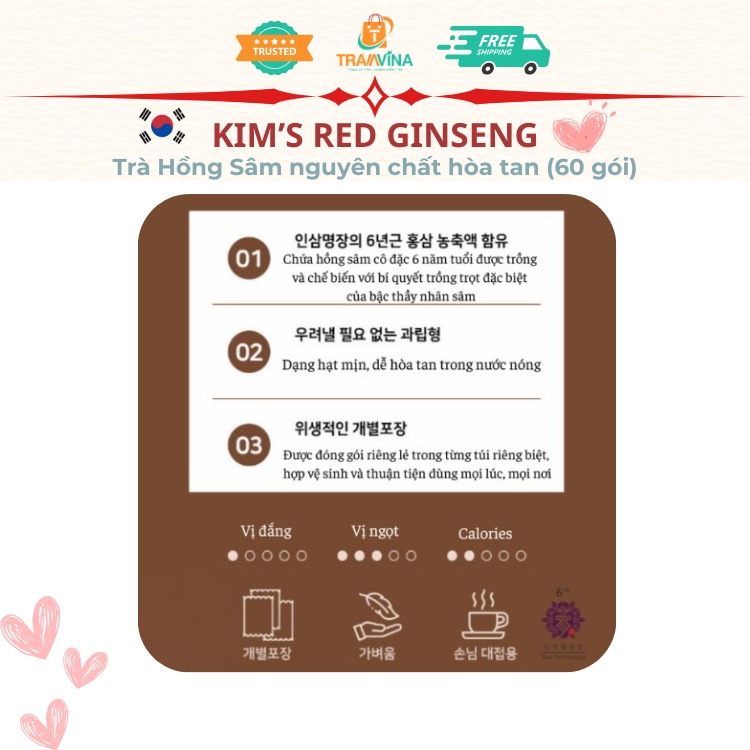 ✨Trà Hồng Sâm Kim's Red Ginseng nguyên chất hòa tan (60 gói)