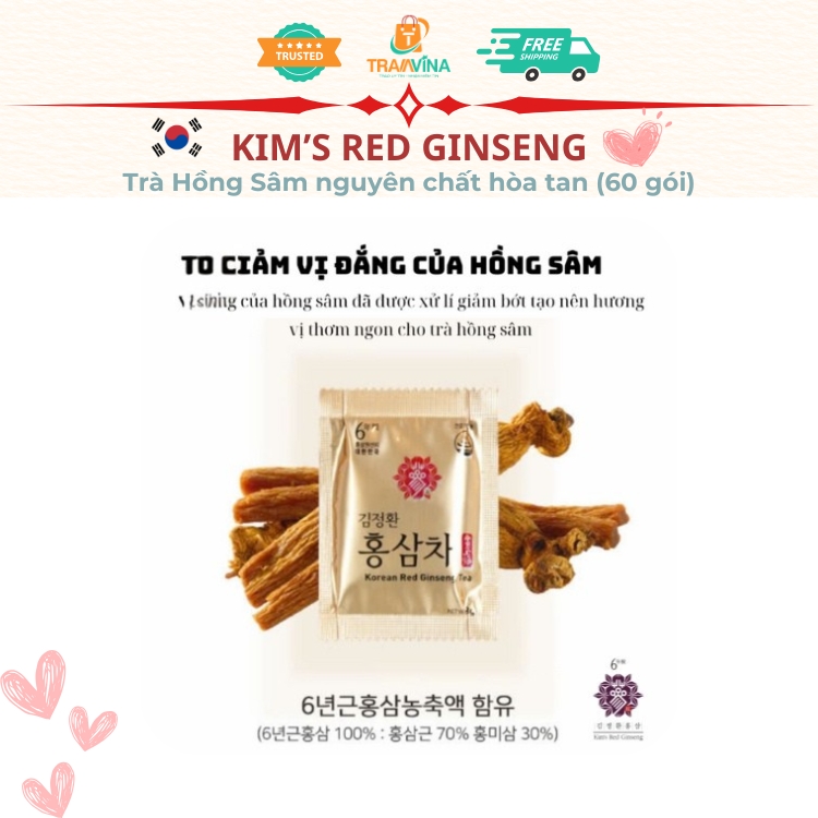Mua tại TiktokKim's Red Ginseng - Trà Hồng Sâm nguyên chất hòa tan (60 gói)