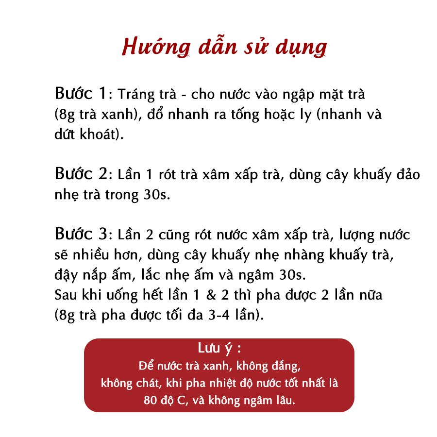 HƯƠNG VỊ: Hương thơm đặc trưng của trà xanh thái nguyên, vị ngọt ngào lẫn vị béo như hương cốm mới.