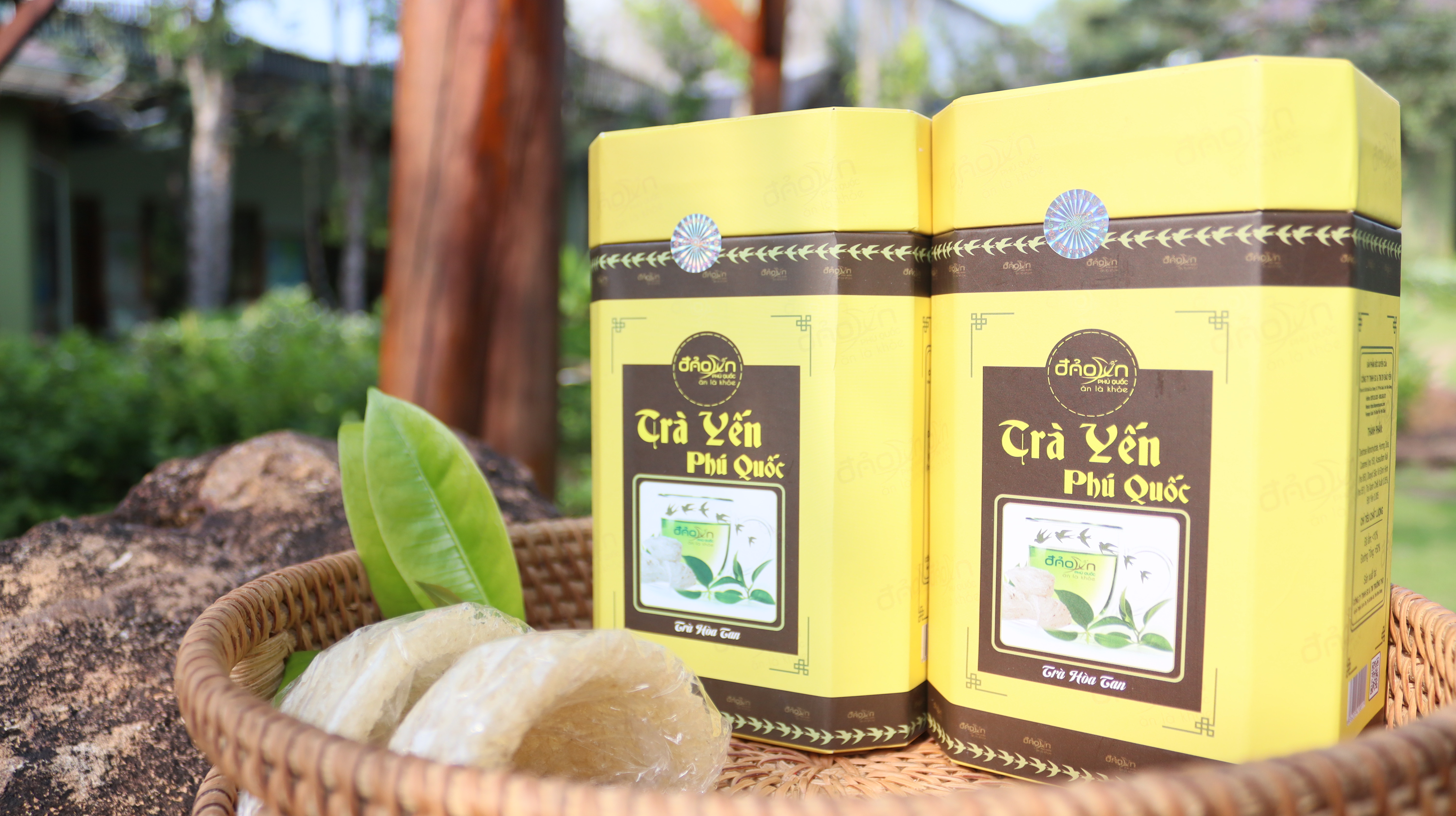 - Trà Yến Phú Quốc là gì? Trà yến phú quốc là đặc sản thơm ngon, bổ dưỡng của đảo Ngọc. Được kết hợp chủ yếu từ bột hương yến và bột trà xanh với tỷ lệ vàng tạo nên một mùi thơm nhẹ nhàng, kích thích vị giác, tăng sảng khoái tinh thần. Giúp giải nhiệt vào những ngày nắng nóng và nâng cao sức đề kháng.