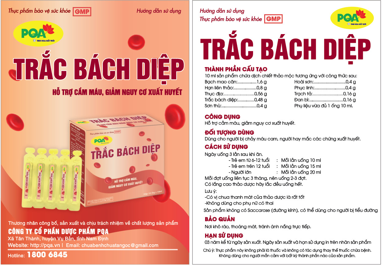 ✨Trắc Bách Diệp PQA Hỗ Trợ Cầm Máu Dùng Cho Người Bị Chảy Máu Cam Hay Mắc Các Chứng Xuất Huyết Hộp 10 Ống