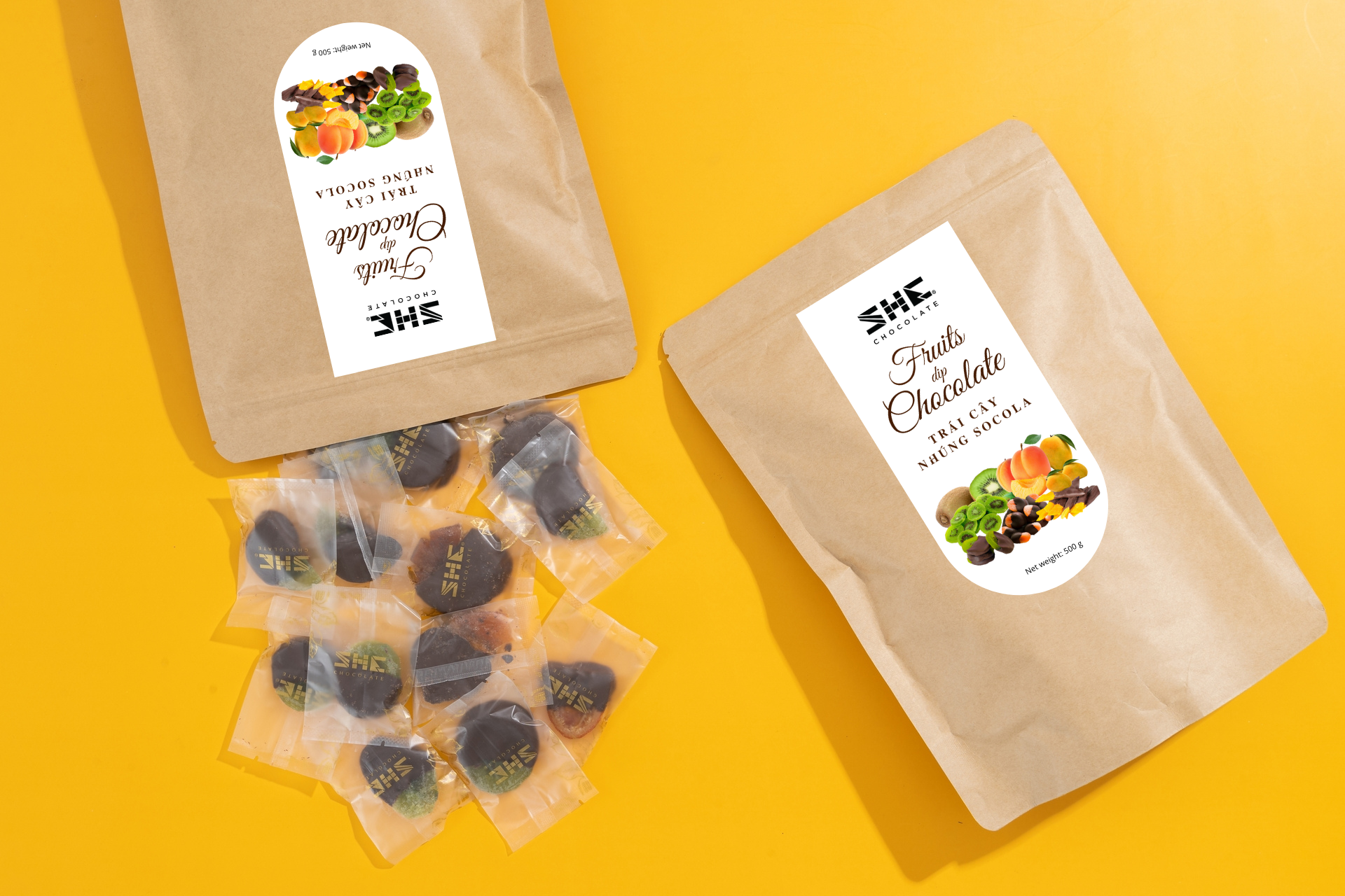 ✨Trái cây nhúng socola thập cẩm (Mix 4 vị Xoài, Cam, Kiwi) - túi 500g -SHE Chocolate - Đa dạng vị giác, bổ sung năng lượng. Quà tặng dịp lễ, người thân, thích hợp ăn vặt văn phòng