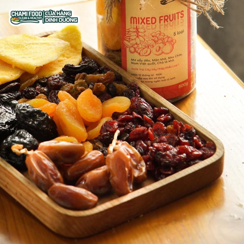 ✨Trái cây sấy dẻo Chami KHÔNG ĐƯỜNG 500G Mix 6 hoa quả Mơ sấy dẻo Chà Là Mận sấy Nho khô Nam việt quất sấy Xoài sấy