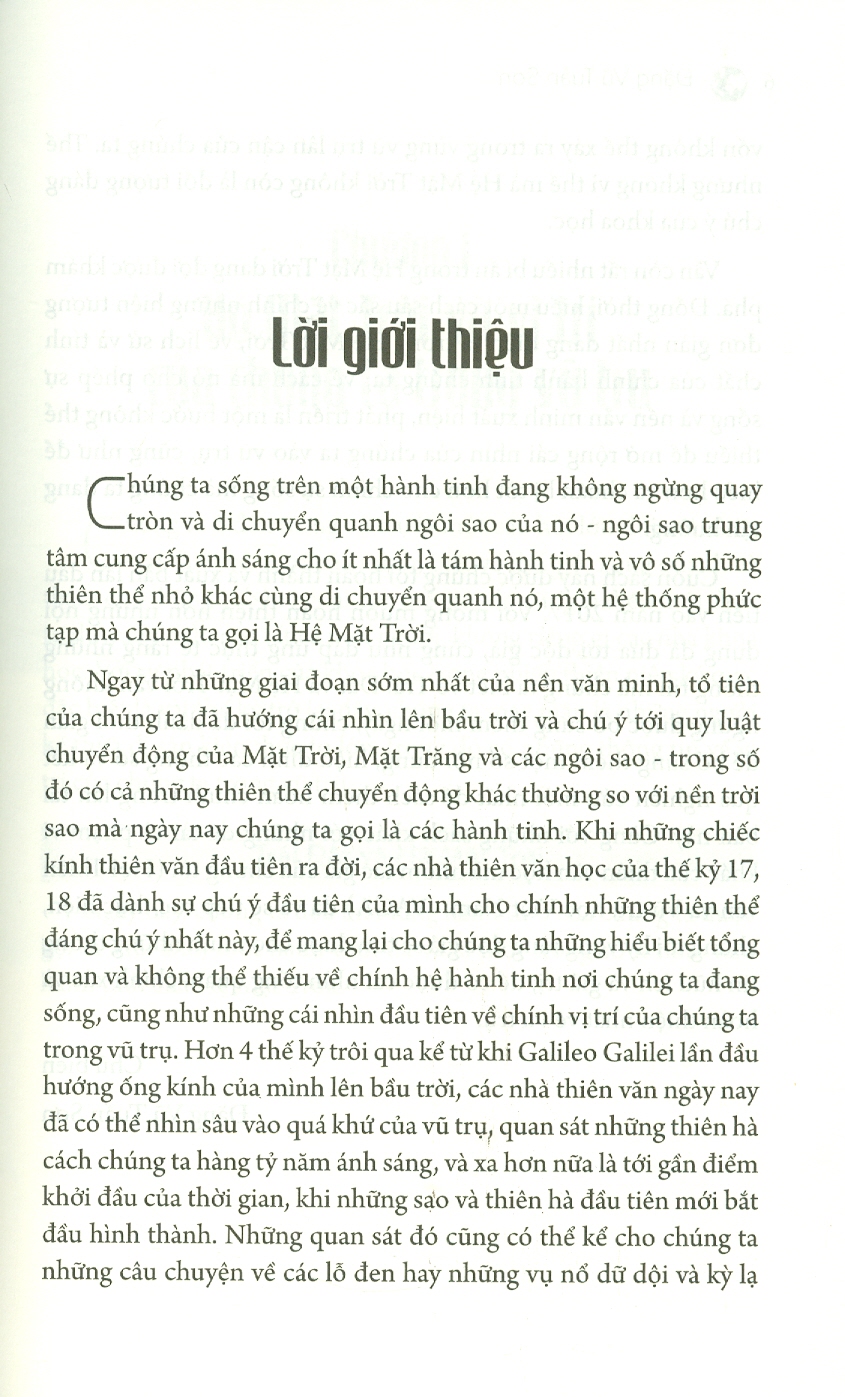 Ngay từ những giai đoạn sớm nhất của nền văn minh, tổ tiên của chúng ta đã hướng cái nhìn lên bầu trời và chú ý tới quy luật chuyển động của Mặt Trời, Mặt Trăng và các ngôi sao - trong số đó có cả những thiên thể chuyển động khác thường so với nền trời sao mà ngày nay chúng ta gọi là các hành tinh. Khi những chiếc kính thiên văn đầu tiên ra đời, các nhà thiên văn học của thế kỷ 17, 18 đã dành sự chú ý đầu tiên của mình cho chính những thiên thể đáng chú ý nhất này, để mang lại cho chúng ta những hiểu biết tổng quan và không thể thiếu về chính hệ hành tinh nơi chúng ta đang sống, cũng như những cái nhìn đầu tiên về chính vị trí của chúng ta trong vũ trụ.