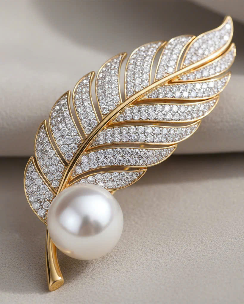 Trọng lượng: 10.0g Chiếc trâm cài áo từ lâu đã vượt qua giới hạn của một món trang sức đơn thuần, trở thành tuyên ngôn cá nhân và là biểu tượng của đẳng cấp. Trâm cài áo lông vũ mạ vàng, đính ngọc trai và kim cương này chính là một tuyệt tác như thế. Với thiết kế lấy cảm hứng từ hình ảnh lông vũ mềm mại, mỗi đường nét đều được chế tác tinh xảo, tái hiện sống động vẻ uyển chuyển của chiếc lông vũ đang bay lượn. Toàn bộ bề mặt được nạm hàng trăm viên cubic zirconia lấp lánh, tạo nên độ bắt sáng hoàn hảo, thu hút mọi ánh nhìn. Điểm nhấn không thể bỏ qua chính là viên ngọc trai baruqoe được đính kết khéo léo, mang đến sự hài hòa giữa vẻ đẹp kiêu sa của kim cương và nét dịu dàng, tinh khiết của ngọc trai. Sự kết hợp giữa màu vàng ấm áp của kim loại, ánh sáng trắng của kim cương và vẻ bóng mượt của ngọc trai tạo nên một tổng thể xa hoa nhưng không phô trương. Chiếc trâm cài này không chỉ là phụ kiện cho áo blazer, áo dạ hội mà còn có thể được sử dụng sáng tạo như kẹp tóc cài đầu hay điểm xuyết trên túi xách da, khẳng định gu thẩm mỹ tinh tế và sự sang trọng vượt thời gian của người sở hữu. Hướng dẫn sử dụng
