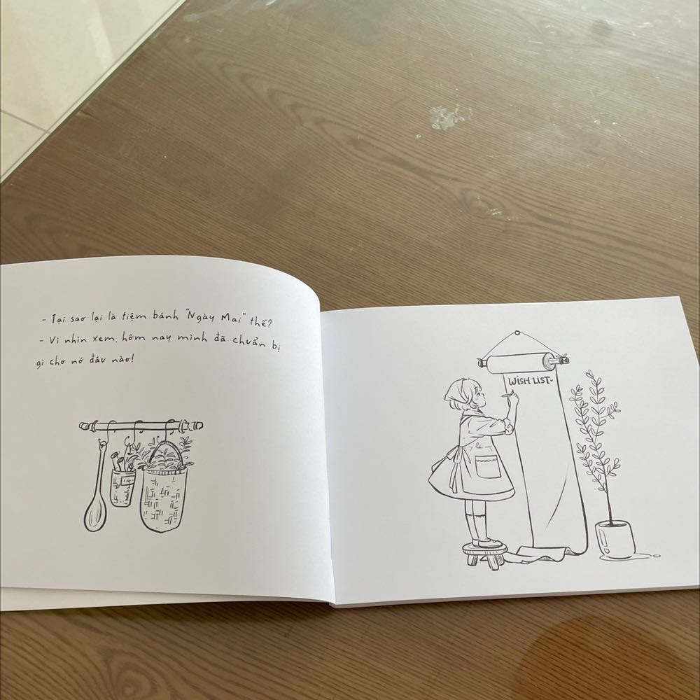 Cuốn sách tô màu này dành tặng bạn, cho những ngày u ám, cho những sắc xám đôi khi xuất hiện trong cuộc đời. Mỗi lúc ấy, hãy cầm lên những chiếc bút màu rực rỡ, tự mình tô điểm sắc màu cho “Ngày Mai”, lấp đầy cuốn sách bằng muôn vàn màu sắc của chính bạn! Mong rằng ở tiệm bánh nho nhỏ với cái tên đặc biệt này, bạn sẽ được tận hưởng những phút giây bình yên không muộn phiền.