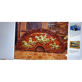 _ Tranh cánh quạt khắc tích mã đáo thành công được làm bằng chất chất liệu gỗ hương đỏ tự nhiên 100% _ Kt 50×100 dầy 4cm _ Tranh được khắc nổi tỉ mỉ ,tinh
