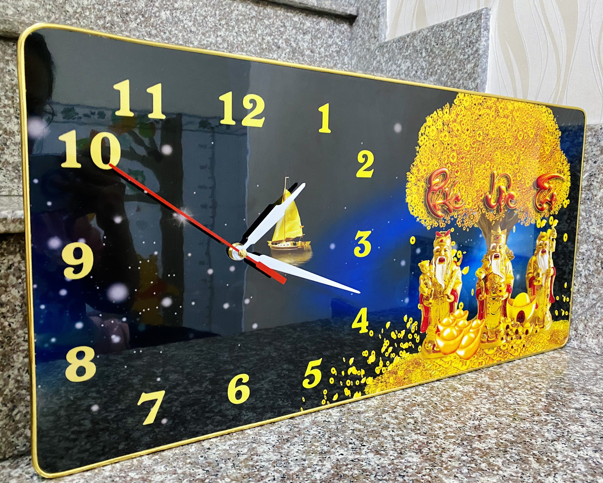 Tranh đồng hồ tráng gương phúc lộc thọ Tranh đồng hồ tráng gương phúc lộc thọ sẽ góp phần làm cho không gian nhà bạn trở nên sinh sinh động và tươi mới hơn. Ưu điểm và ý nghĩa của tranh đồng hồ: Tranh đồng hồ tráng gương rất phong phú về chủ đề, màu sắc, chất liệu, ý nghĩa. Bên cạnh đó, tranh đồng hồ sẽ có những loại tranh phù hợp riêng, xét về góc độ thẩm mỹ, tranh dồng hồ cho phòng khách,phòng ngủ,phòng bếp sẽ gồm những bức tranh về phong cảnh, thiên nhiên, cảnh quan tươi đẹp. Tùy vào diện tích và thiết kế của căn phòng. Tranh đồng hồ không chỉ để xem giờ mà còn giúp không gian căn phòng thư thái,dễ chịu,giúp cho căn nhà của bạn tràn đầy sức sống,tinh thần thoải mái sau những giờ làm việc căng thẳng.  Chất liệu và kích thước: Tranh tráng gương được làm từ lọai giấy cao cấp,in ảnh chất lượng cao,không bị nhòe ảnh hay bể ảnh,cán lớp mica tráng gương bóng bảo vệ chịu nước và chống bay màu tốt,đem lại cho bạn một sản phẩm không chỉ độc đáo về hình ảnh mà còn tốt về chất lượng.Sản phẩm được làm từ những lọai gỗ mịn cao cấp nhập khẩu từ nước ngoài (gỗ MDF), phủ melamine có tính chống trầy cao,không biến dạng. Kích thước chi tiết: 30x60cm 40x80cm