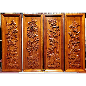 Tranh tứ quý, Tùng cúc trúc mai,gỗ gụ, Đồ gỗ Đức Hiền