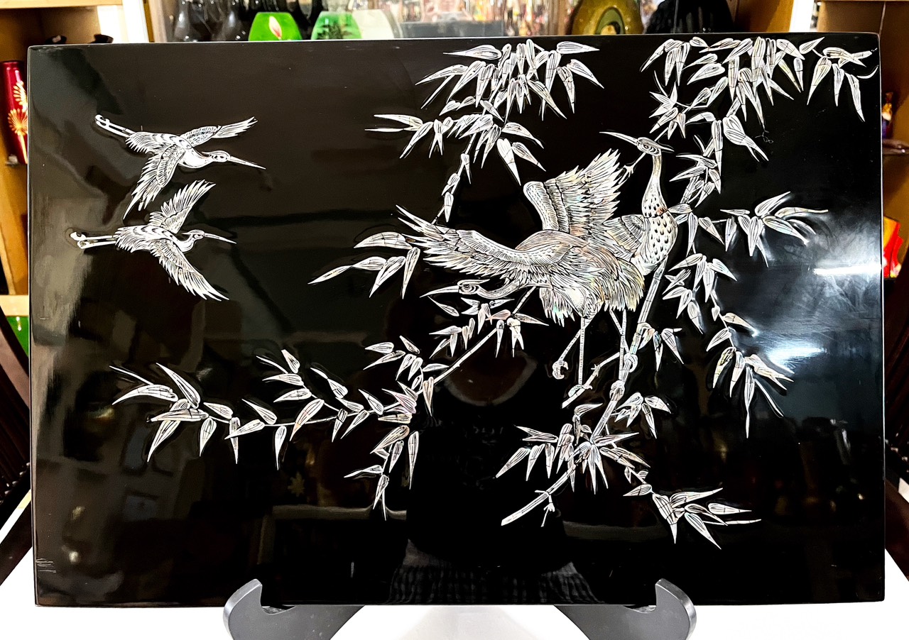 Kích thước 40x60cm Chất Liệu gỗ MDF phủ Melamin có độ bền cao Tranh sơn mài cẩn ốc là tranh nghệ thuật thủ công truyền thống của Việt Nam khác biệt hẳn so với các