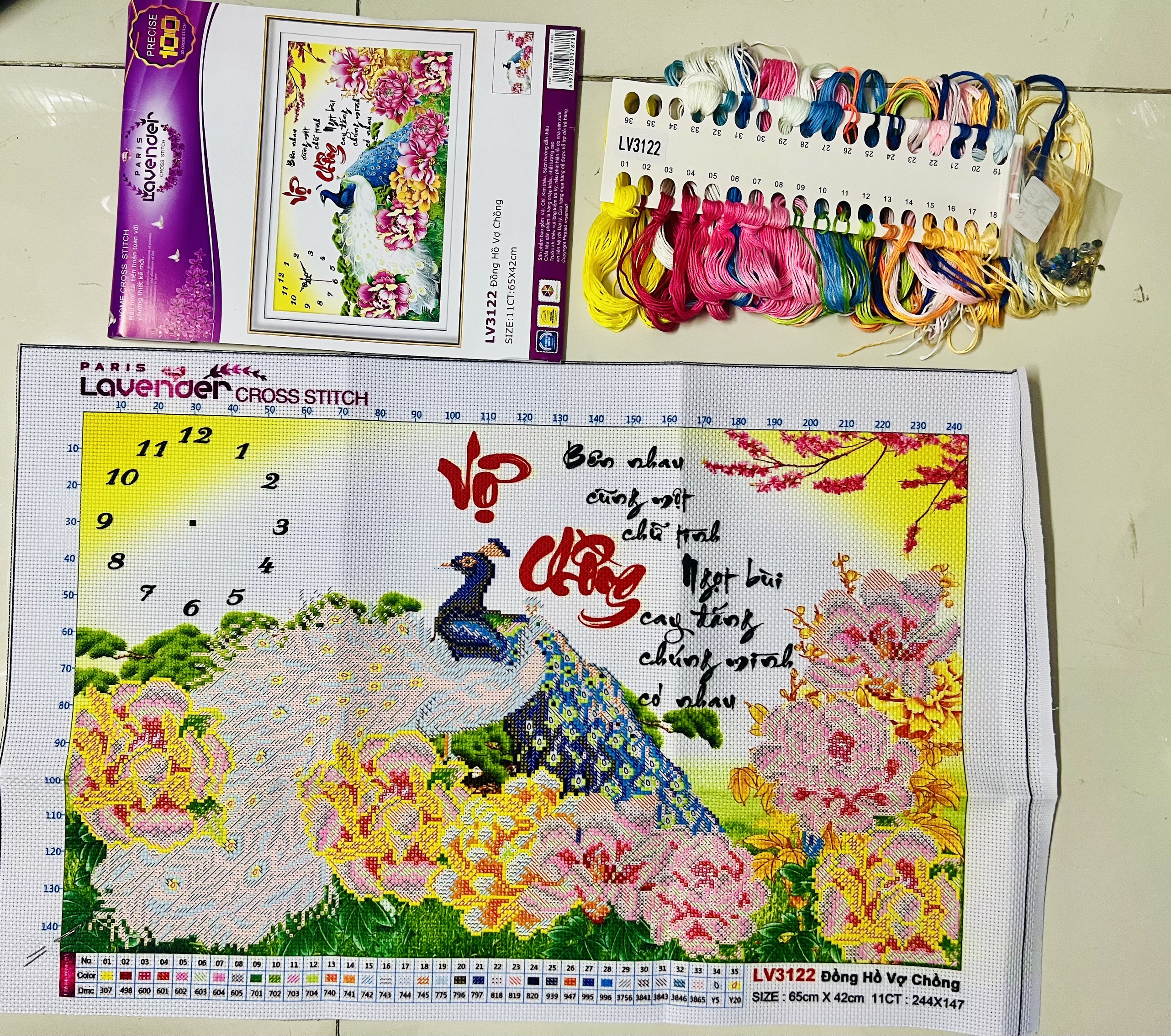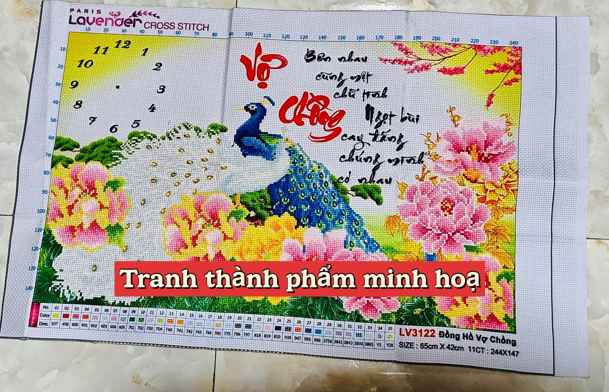 ✨Tranh thêu chữ thập Đồng hồ vợ chồng LV3122, kích thước 65 x 42 cm