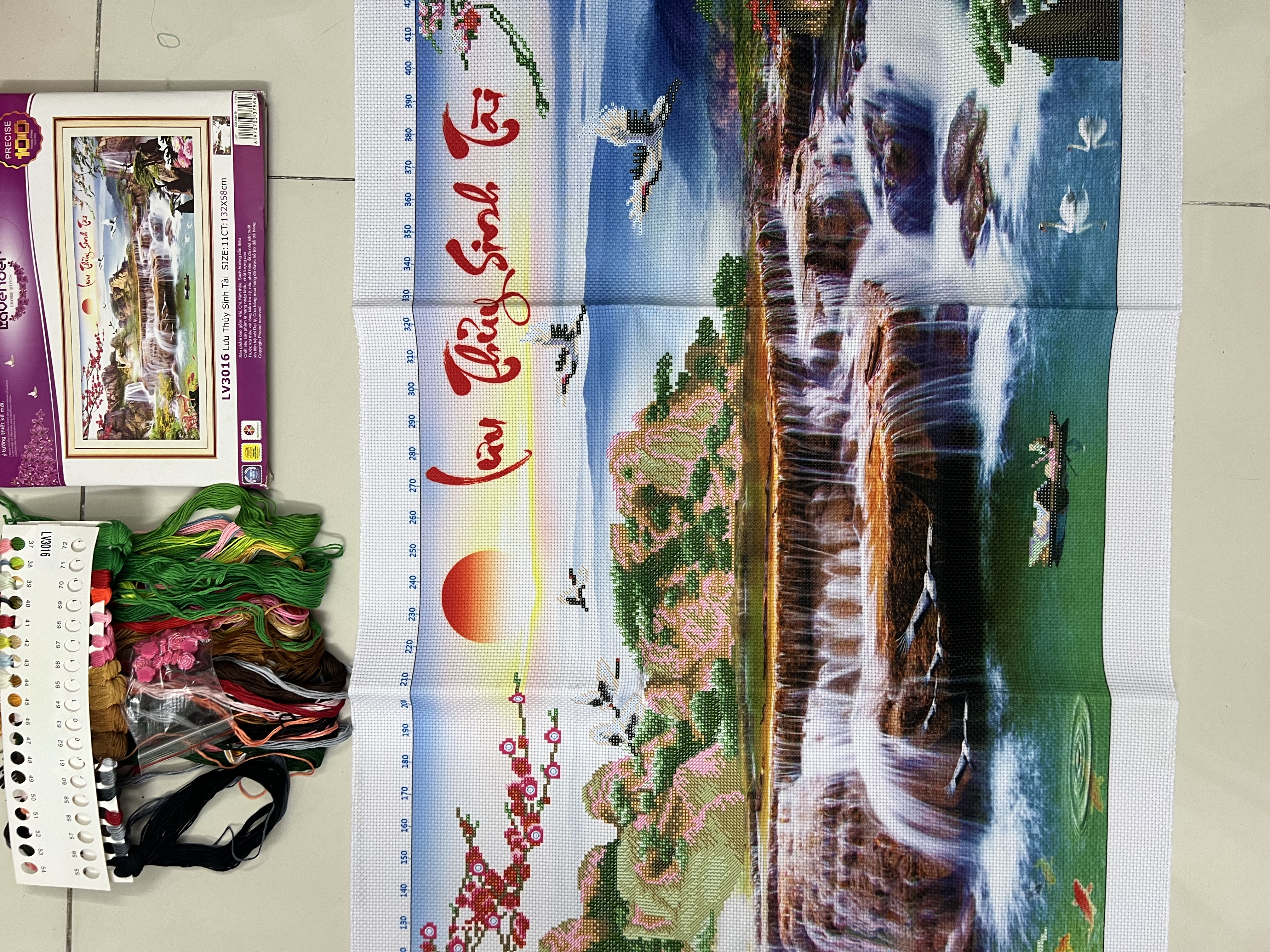 Tên tranh: Tranh thêu chữ thập Lưu thủy sinh tài LV3016.