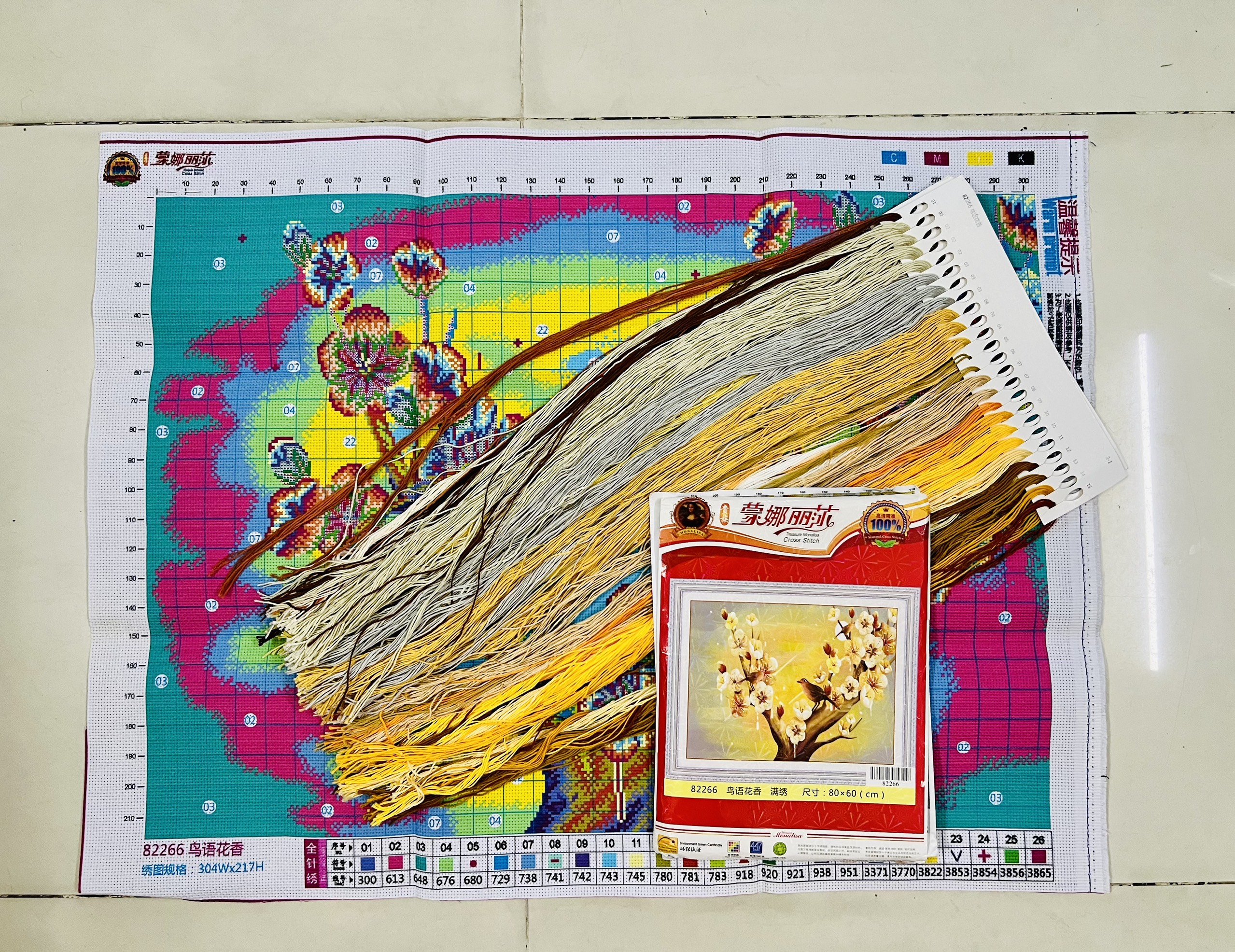 Sản phẩm là chỉ rất đẹp, tươi sáng. Phôi tranh rõ ràng dễ thêu. Thể loại: Tranh thêu chữ thập - sản phẩm này tranh chưa thêu. Kích thước: 60 x 60 cm Vị trí