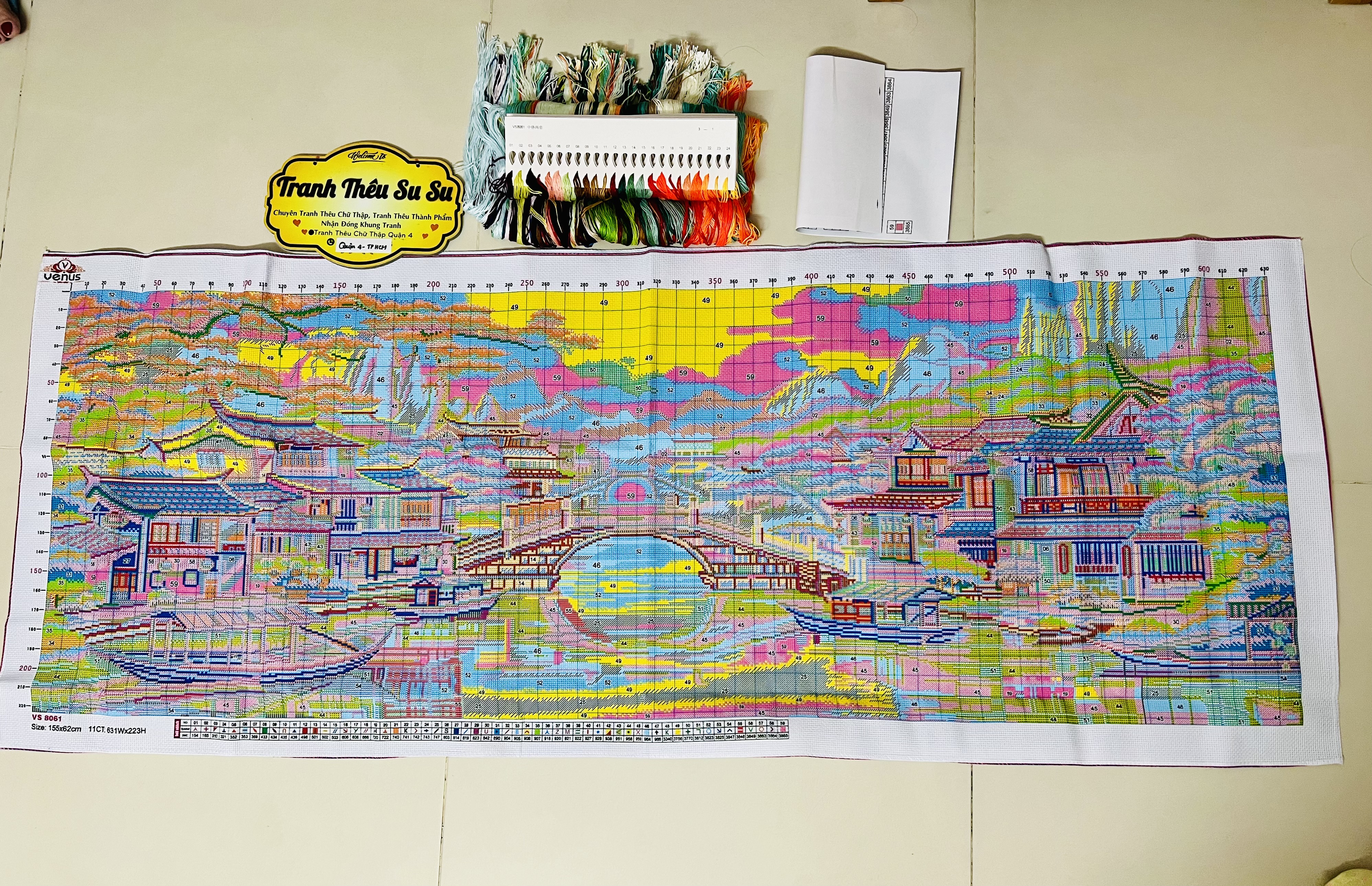 ✨Tranh thêu kín Phong cảnh Giang Nam vs8061, kích thước 155 x 62 cm