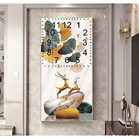 Tranh đồng hồ tráng gương hươu bên đá cuội
