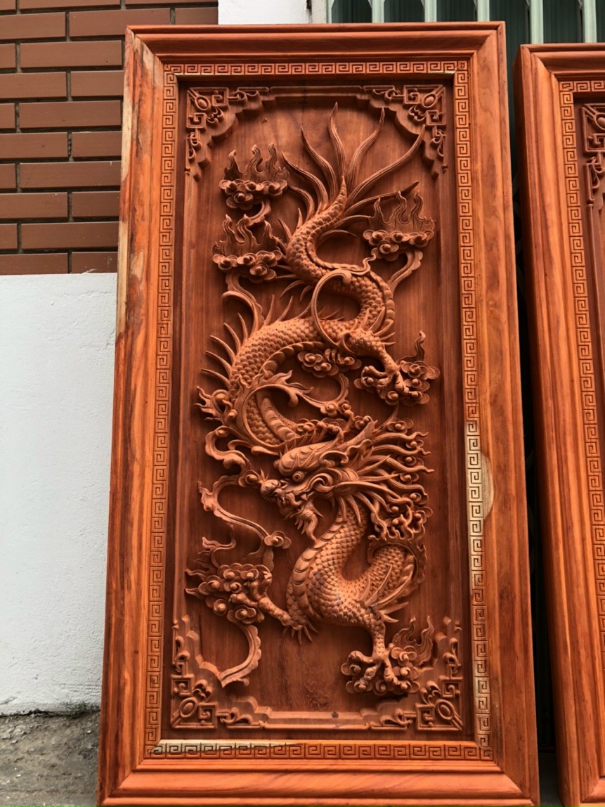 Tranh treo tường trạm khắc tứ linh được làm bằng chất liệu gỗ hương đỏ tự nhiên 100%  Kích thước 37×107×4cm và có nhiều kt khác nhau ,Cũng như độ dầy của gỗ khách muốn được kt như nào nhắn tin cho mình , _ Tranh treo tường trạm ,khắc tứ linh ,được trạm khắc tỉ mỉ ,Tinh sảo kỳ công .Đi hầu hết tất cả mọi chi tiết góc ngách nội dung hoa văn của tranh ,đều được ngọt tỉa chỉnh sửa hoàn toàn bằng tay thủ công .Đồng thời tranh được kiểm định kỹ lưỡng .Mục đích trống dập nứt vênh mo mối mọt .Kết hợp với trà nhám ,Đánh giấy giáp nhiều nước ,cho sạch sẽ sờ mát lạnh ,Rồi cho vào phun lót làm bóng mờ ,Để giữ lại mầu sắc vân gỗ tự nhiên .Tranh tứ linh được làm và hoàn thiện do bàn tay khối óc tài hoa ,Từ những người thợ giàu kinh nghiệm ,cũng như tay nghề cao trong làng nghề truyền thống .Chính vì thế tranh tứ linh đã đáp ứng đầy đủ những tiêu trí ( Đẹp bền rẻ ) Thẩm mỹ nghệ thuật với chất lượng tuyệt vời