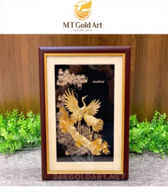 Tranh tùng hạc diên niên mạ vàng – Dát vàng