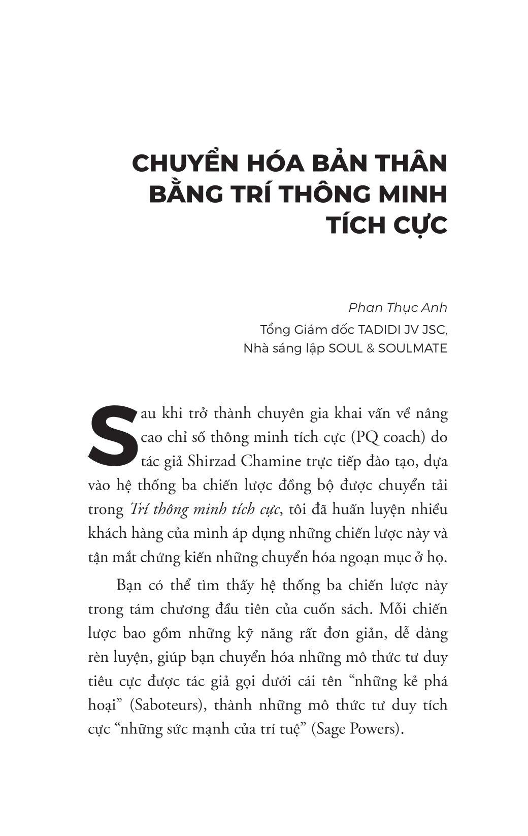 “Những công cụ và kỹ thuật để cải thiện Trí thông minh tích cực đều đơn giản và thực tế nhưng lại hiệu quả đến bất ngờ…Cuốn sách này là một món quà, hãy chia sẻ nó với những người khác.” – Jim Lanzone, Chủ tịch Tập đoàn CBS