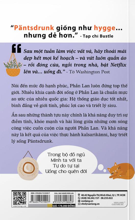 Triết Lý Sống Pantsdrunk - Chill Như Người Phần Lan Sau một tuần làm việc vất vả, hãy thoải mái dẹp hết mọi kế hoạch – và vứt luôn quần áo – rồi đóng cửa, ngồi trong nhà, bật Netflix lên và… uống đi.” - Tờ Washington Post Nói đến mức độ hạnh phúc, Phần Lan luôn đứng top thế giới. Nhiều khía cạnh đời sống ở Phần Lan là chuẩn mực ao ước của nhiều quốc gia: Hệ thống giáo dục tốt nhất, bình đẳng về giới tính, phúc lợi cao và triết lý sisu. Ẩn sau những thành tựu này chính là khả năng duy trì sự điềm tĩnh, khỏe mạnh và hài lòng giữa những cơn sóng công việc cuồn cuộn của người Phần Lan. Và khả năng này là kết quả của việc thực hành kalsarikänni, hay triết lý sống Päntsdrunk. Trong bộ đồ ngủ Mình ta với ta Tự do tự tại Uống cho quên đời