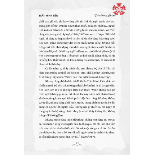 Cuốn sách Trở về trong giấc mơ được nhà văn Đặng Vương Hưng sưu tầm, tuyển chọn, tập hợp từ những trang nhật ký của liệt sĩ Trần Minh Tiến viết trong khoảng thời gian