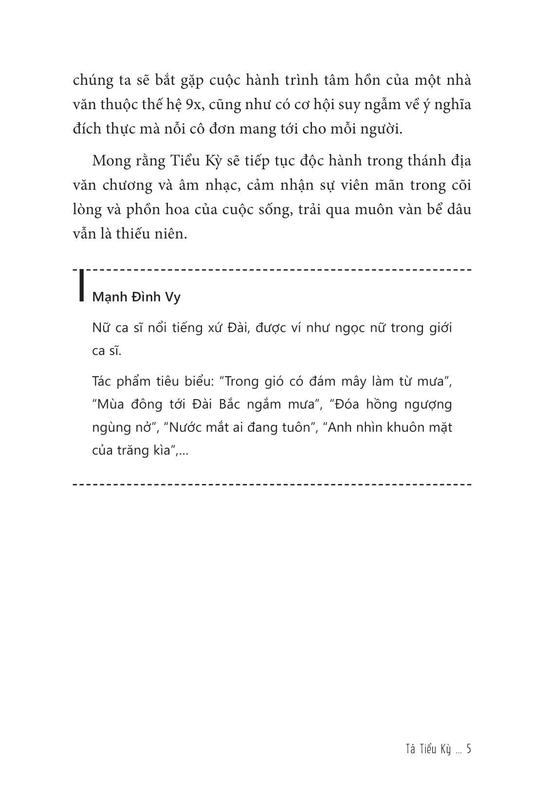 Cuốn sách này sẽ chia sẻ với bạn đọc cách để đối mặt với sự hoang mang, cách thoát ra khỏi cô đơn và khó khăn, cách chuyển hóa cô đơn thành dưỡng chất cho sự trưởng thành, từ đó gặp được phiên bản tốt đẹp nhất của bản thân m.ình.