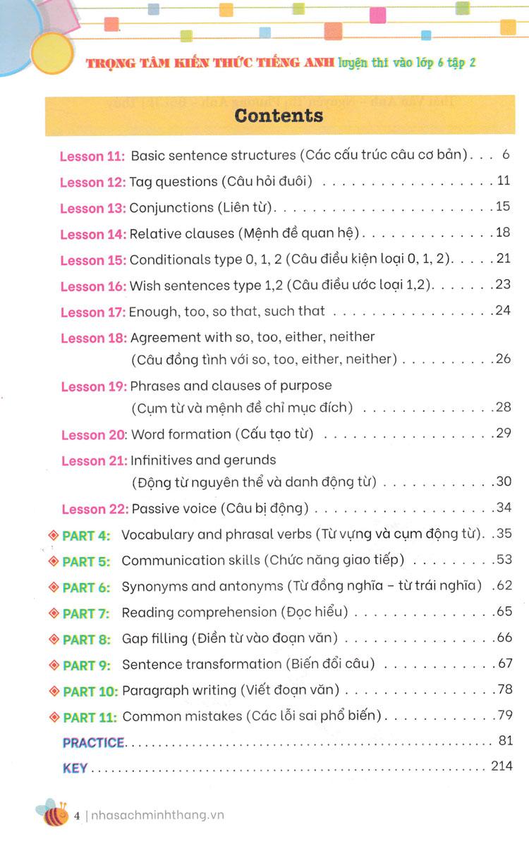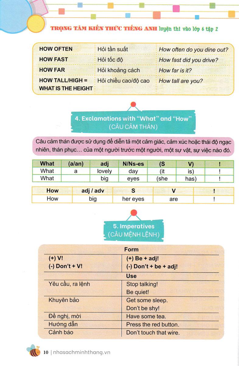 ✨Trọng Tâm Kiến Thức Tiếng Anh Luyện Thi Vào Lớp 6 - Tập 2 (Không Đáp Án)