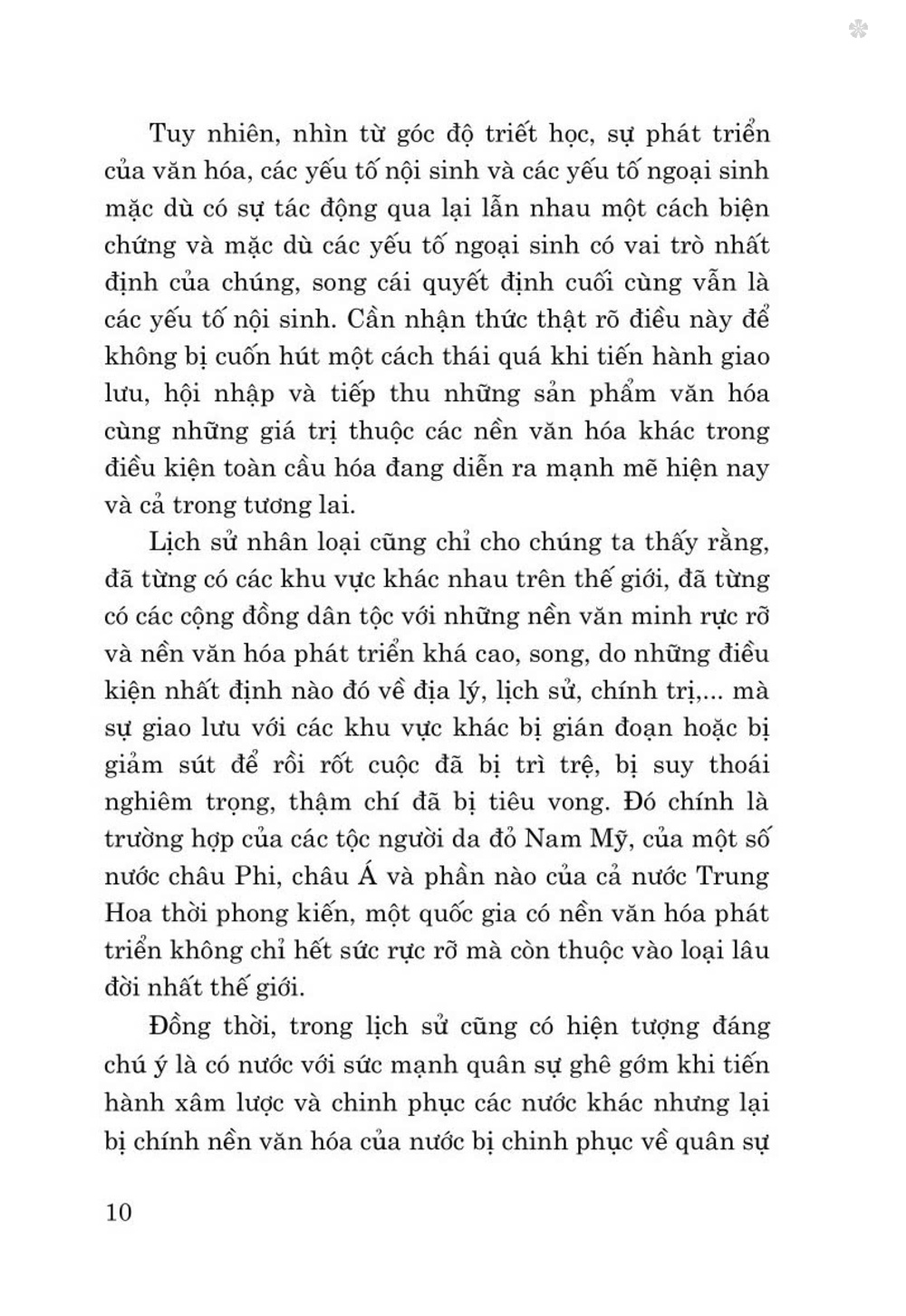 Đồng thời, tác giả cũng chỉ rõ rằng, nền tảng văn hóa là một trong những yếu tố quan trọng hàng đầu cấu thành chất lượng của cán bộ lãnh đạo và quản lý cấp chiến lược; sự nêu gương, sự dẫn dắt của các cán bộ này góp phần khơi dậy và phát huy các giá trị văn hóa sẽ thúc đẩy việc thực hiện khát vọng phát triển đất nước phồn vinh, nhân dân hạnh phúc. Tác giả cũng dành một phần dung lượng của cuốn sách để bàn về sự gắn kết giữa văn hóa với chính trị và kinh tế; về văn hóa doanh nghiệp và văn hóa kinh doanh; về văn hóa tôn giáo trong đời sống và sự phát triển của xã hội. Đây là những lĩnh vực quan trọng bậc nhất của quốc gia vì nó quán xuyến mọi hoạt động, từ cấp thấp nhất đến cấp cao nhất trong bộ máy công quyền, có nhiệm vụ duy trì và thúc đẩy sự phát triển bền vững mọi mặt từ kinh tế đến chính trị - xã hội của đất nước cũng như quan hệ đối ngoại trong điều kiện thế giới vô cùng phức tạp và đầy những biến động khó lường hiện nay.