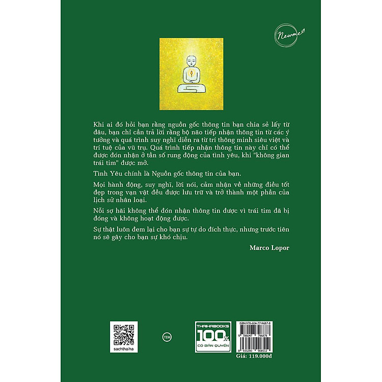 Tự chữa lành thông qua hiểu biết về khoa học tâm thức, cuốn sách được ThS. BS Dương Quỳnh Châu ghi chép những lời giảng của Pradeep Vijay & Navneet Kaur. Cuốn sách sẽ phù hợp với ai đang trên hành trình tìm kiếm sứ mệnh tâm linh của mình trong kiếp này, cách để nhận ra các bài học, những tổn thương cần tự mình chữa lành và những phương pháp để giúp bạn chữa lành. Cuốn sách được chia làm bốn phần. Phần một, viết về hành trình của linh hồn tại phần này bạn sẽ hiểu được linh hồn của chúng ta là vĩnh cửu, các bước tiến hóa của linh hồn qua các kiếp là như thế nào? Quá trình tạm biệt cơ thể vật lý để bước đến một kế hoạch tái sinh mới sẽ ra sao. Phần hai, về luật nhân quả bạn sẽ hiểu được các dòng năng lượng của nghiệp, những hành động gì thì tạo nghiệp quả tốt và nghiệp quả xấu; các bài học liên quan đến nghiệp, những kế hoạch mà bạn đã định ra trước khi tái sinh có ý nghĩa như thế nào? Phần ba, hệ thống các luân xa của mỗi người với vai trò và sự ảnh hưởng của năng lượng của các luân xa này lên đời sống ra sao, và cách để mỗi người có thể tự cân bằng lại dòng năng lượng ở mỗi luân xa như thế nào. Phần cuối cùng, những hướng dẫn giúp bạn thiền định – khi thiền định sẽ giúp bạn sáng tỏ hơn những bài học mình cần phải học, những nghiệp quả mình cần phải trả, giúp bạn quay trở về bên trong của mình và kết nối với tâm thức cao hơn. Thông tin tác giả: Pradeep Vijay & Navneet Pradeep Vijay sinh năm 1982, tại Ấn Độ. Năm 2014, tại Thung Lũng Kim Tự Tháo Bangalore, thầy được chỉ định là người giữ viên “Tinh thể thánh linh được lập trình để chữa lành luân xa tim”, thiền với tinh thể giúp chuyển hóa các cảm xúc tiêu cực thành tình yêu thương, lòng từ bi, lòng trắc ẩn. Navneet sinh ra tại Singapore. Cô được dẫn dắt từ bên trong về việc thiết kế các bài giảng tâm linh khác nhau, giúp những người tìm kiếm chân lý có một cái nhìn khoa học, dễ hiểu. Cô bước đi trên hành trình này cùng với người bạn đời của mình là Pradeep Vijay. Ths. Bs. Dương Thị Quỳnh Châu Sinh năm 1985, tốt nghiệp Bác sĩ Đa khoa, lấy bằng Thạc sĩ về Hóa sinh Y học. Năm 2015, bắt đầu thực hành thiền định và ăn thuần thực vật, sống một đời phụng sự tâm linh. Công ty Cổ phần Sách Thái Hà trân trọng giới thiệu!