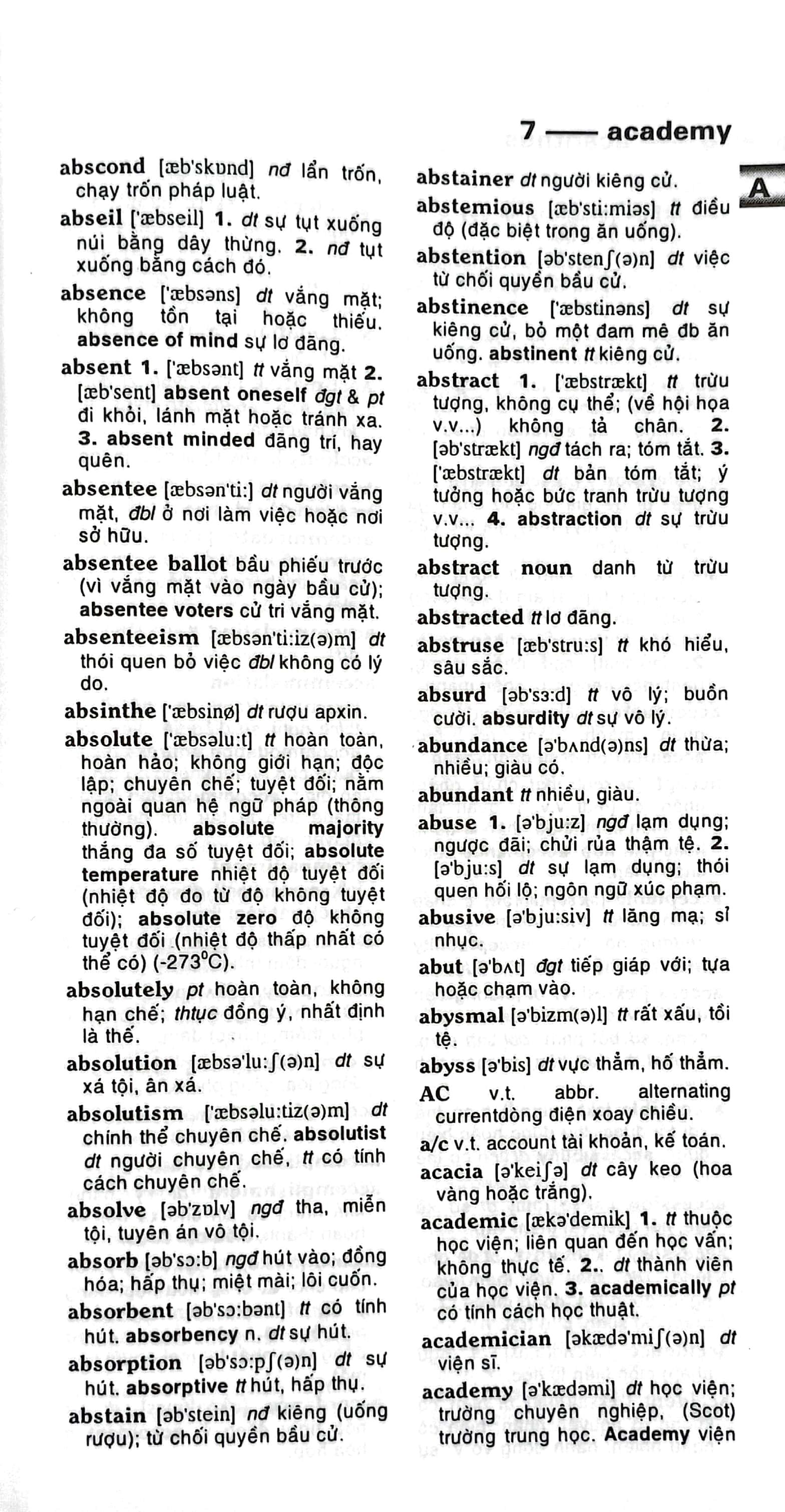 Đồng thời, các từ vựng và ngữ nghĩa được chuyển sang tiếng Anh và tiếng Việt một cách chính xác, rõ ràng và được cập nhật mới nhất. Ngoài ra, từ điển còn cung cấp thêm bảng động từ bất quy tắc và giải nghĩa các chữ viết tắt trong từ điển giúp các bạn tham khảo thêm.