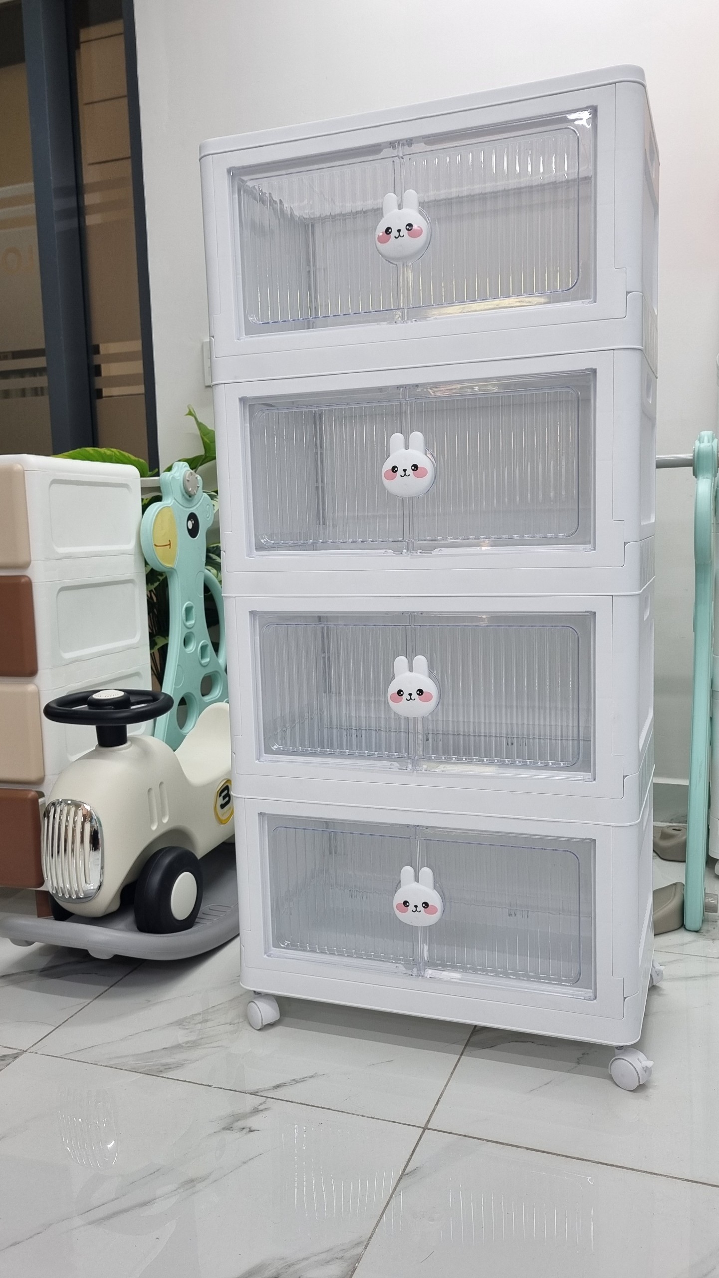Tủ đựng đồ cho bé , tủ nhựa gấu thỏ ngăn kéo 4 tầng đựng quần áo gấu nâu Brown và thỏ hồng, tủ vịt con, tủ tay nắm mây thiết kế theo phong cách