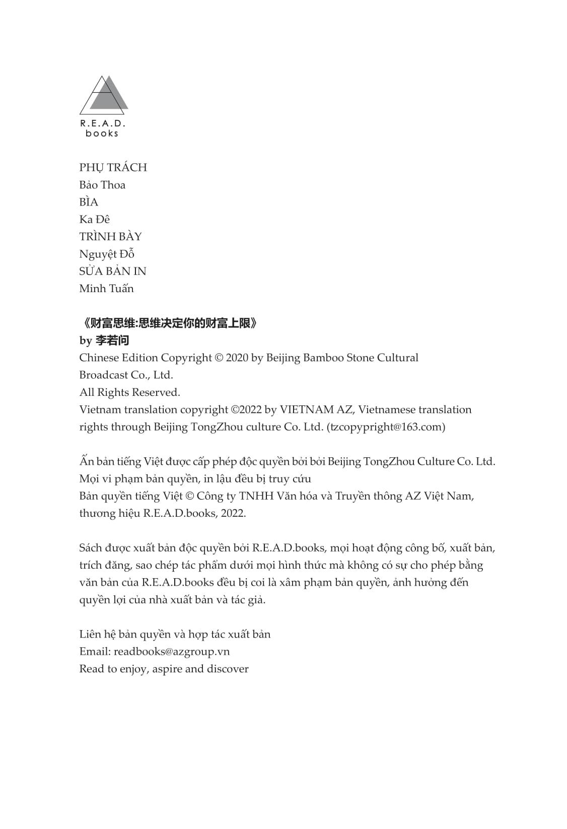 Cuốn sách “Tư duy giàu nghèo: Tư duy quyết định mức độ giàu có của bạn” xuất phát từ góc độ kiến thức tài chính để làm mới nhận thức về tiền bạc và quản lý tài chính, từ đó đưa ra các giải pháp phù hợp với tình hình tài chính của mỗi người. Cho dù bạn đang trong giai đoạn tích lũy, bảo toàn hay dư thừa của cải, cuốn sách đều có thể giúp bạn cải thiện tình hình tài chính của mình.