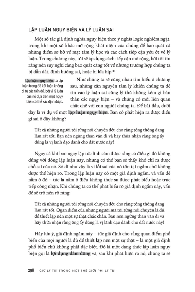 Cuốn sách này được chia thành hai phần. Phần đầu tiên chủ yếu mô tả về cách tiếp nhận thông tin, đặc biệt là trong công trình khoa học, trên tinh thần phản biện và tự tin vận dụng các nguyên tắc tư duy cho bản thân. Phần thứ hai tập trung trình bày về những con đường khiến tư duy của chúng ta mắc phải thiên kiến có thể đoán trước – và cần phải chuẩn bị những gì để ứng phó với những thiên kiến đó trong môi trường công nghệ thông tin của thế kỷ 21 này .