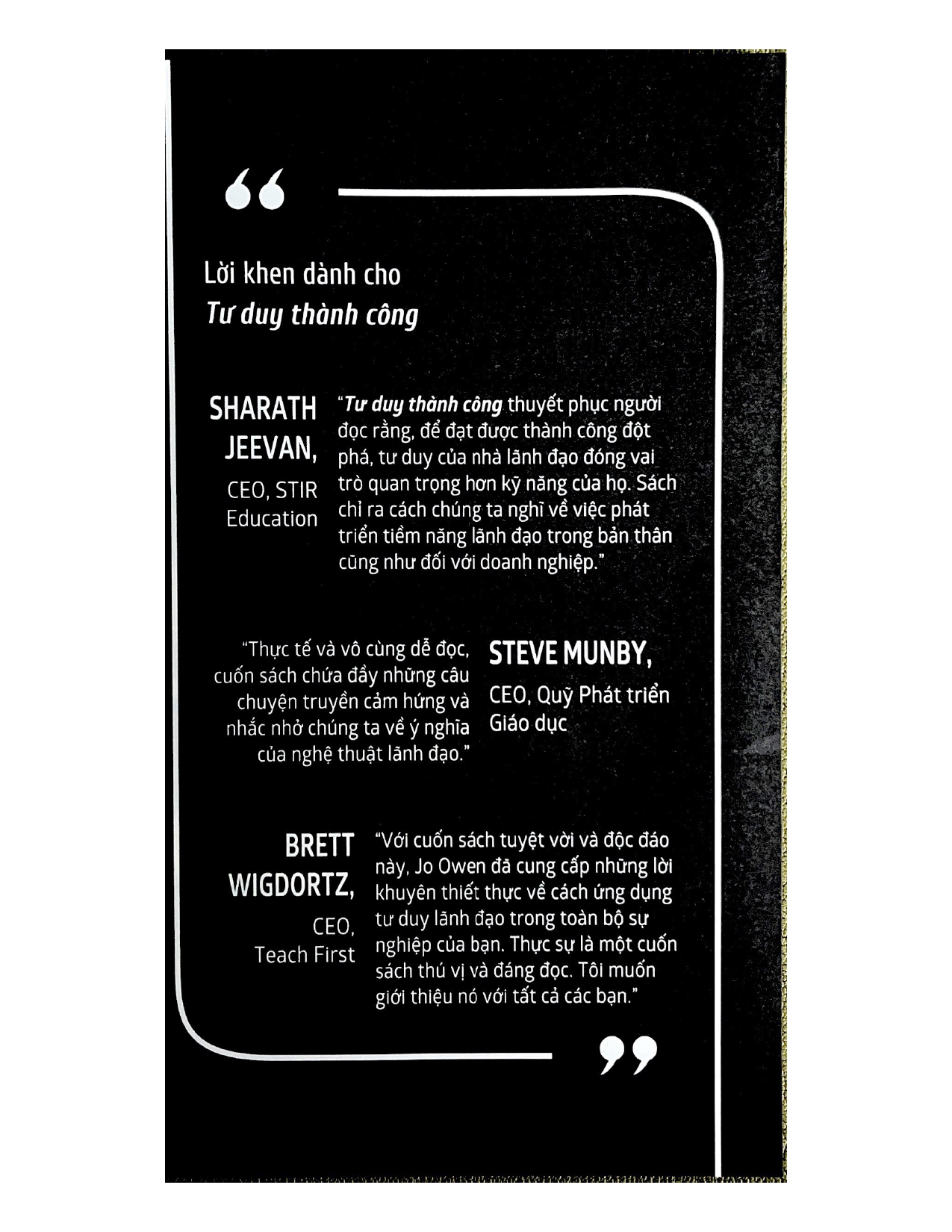 Tư duy thành công cung cấp bộ công cụ đầy đủ và được cấu trúc rõ ràng, nhằm giúp các nhà quản lý khai phá hết tiềm năng của bản thân.