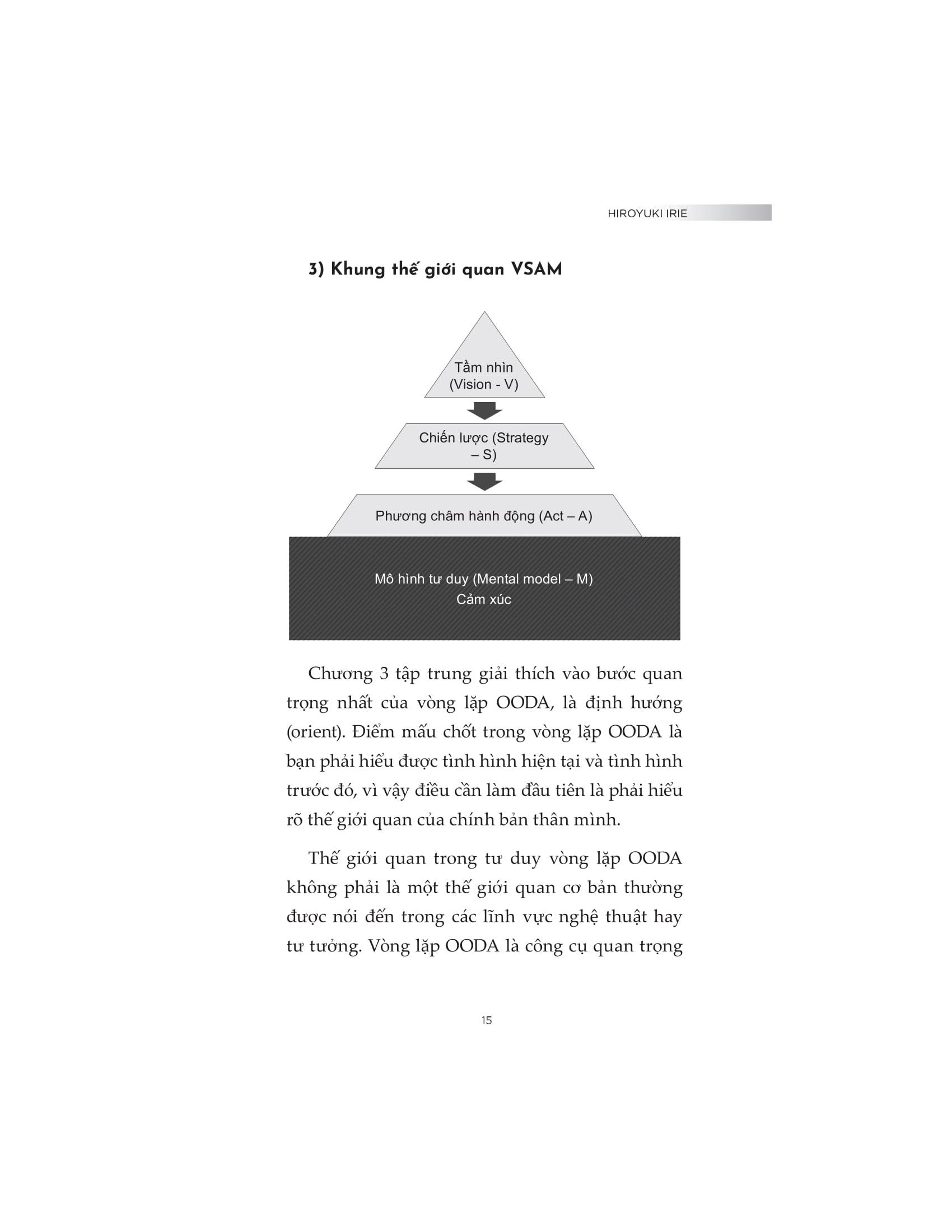 Bên cạnh đó, cuốn sách còn mang đến một góc nhìn mới về định nghĩa thế giới quan bằng khung tư duy VSAM, bao gồm : Tầm nhìn (Vision), Chiến lược (Strategy), Phương châm hành động (Activities Direction) và Mô hình tư duy (Mental Model).