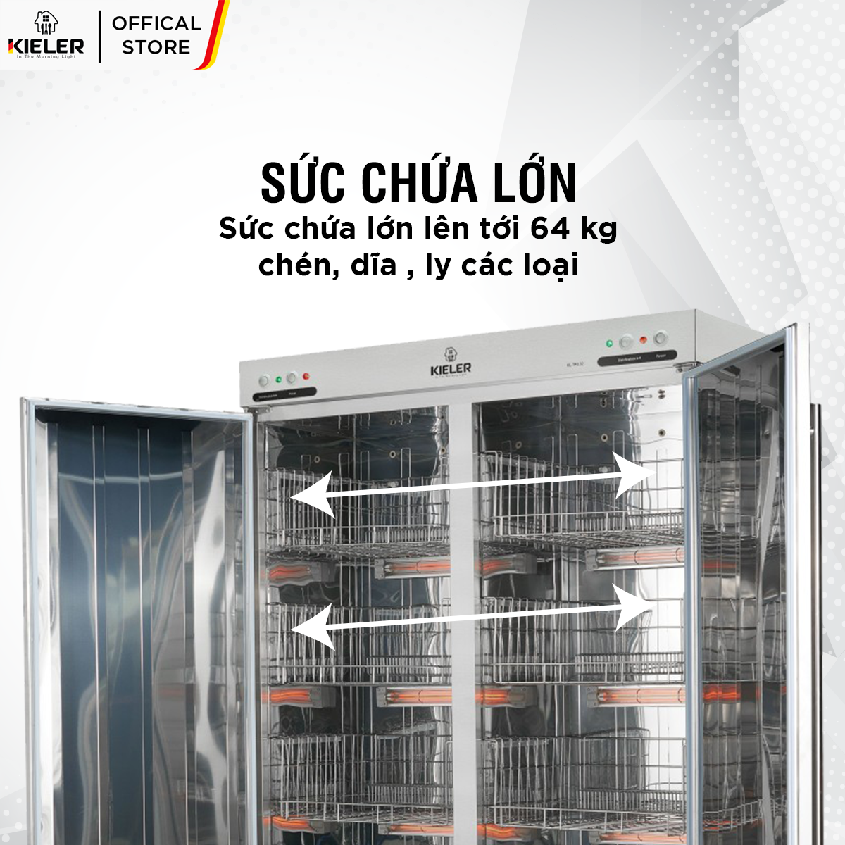 ✨Tủ khử trùng Kieler KL-TK132 khử trùng, sấy khô, làm ấm các loại chén bát đĩa ly với sức chứa 64kg cho nhà hàng, resort - Hàng Chính Hãng