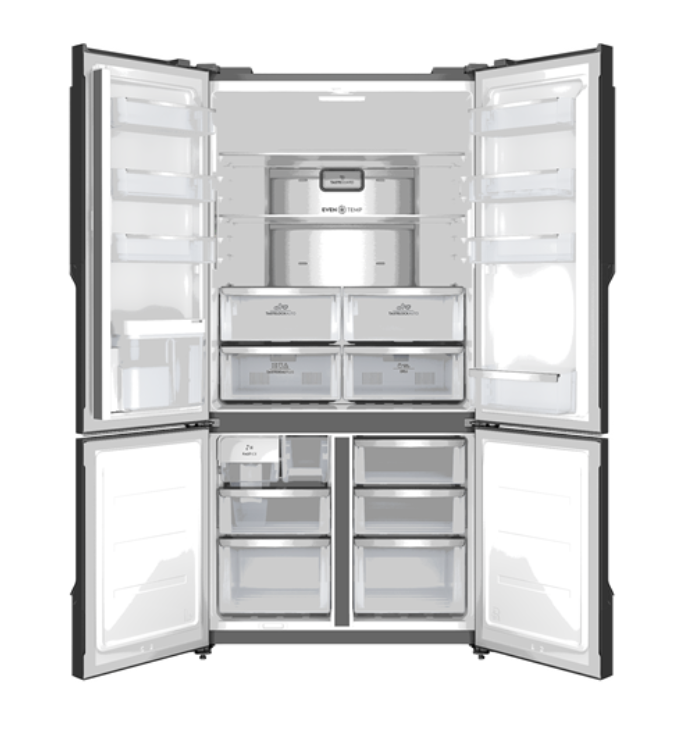 Đặc điểm nổi bật - Dung tích sử dụng 510 lít phù hợp gia đình 4 - 5 thành viên. - Thiết kế âm tường tăng thẩm mỹ cho không gian bếp. - Cánh cửa tủ mở tối đa 120 độ giúp sử dụng thuận tiện, dễ dàng lấy thực phẩm. - Công nghệ Inverter vận hành êm ái, tiết kiệm điện hiệu quả. - Làm đá tự động tạo ra những viên đá mát lạnh nhanh chón Tổng quan - Kiểu tủ:Multi Door - 4 cánh - Dung tích sử dụng:510 lít - 4 - 5 người - Dung tích tổng:561 lít - Dung tích ngăn đá:195 lít - Dung tích ngăn lạnh:315 lít - Chất liệu cửa tủ lạnh:Mặt thép - Chất liệu khay ngăn lạnh:Kính cường lực - Chất liệu ống dẫn gas, dàn lạnh:Ống dẫn gas bằng Đồng & Thép - Lá tản nhiệt bằng Nhôm - Năm ra mắt:2024 - Sản xuất tại:Trung Quốc Mức tiêu thụ điện năng -