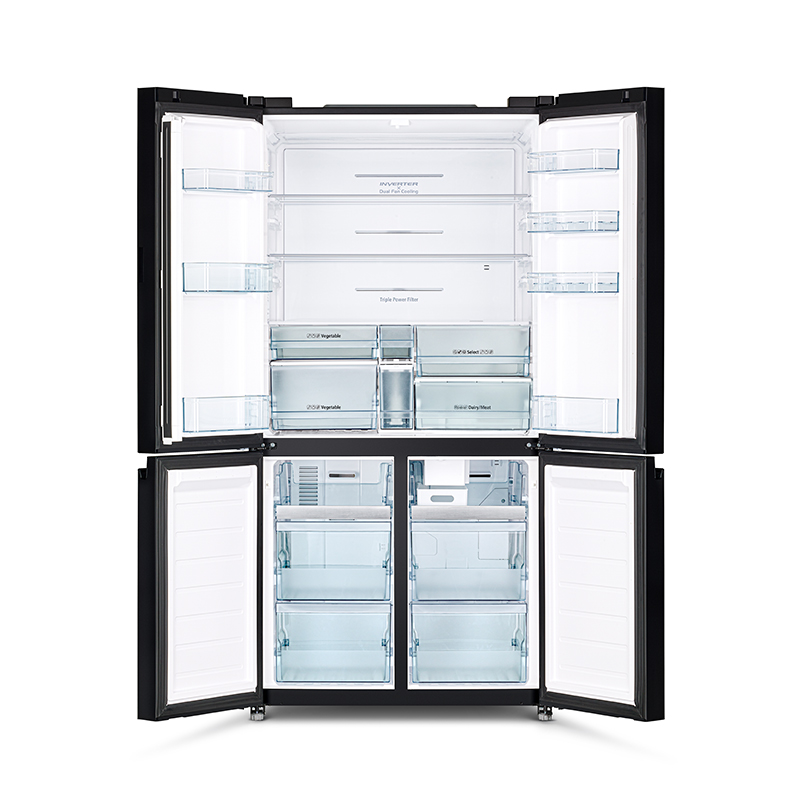 Thiết kế Multi Door lắp âm, trang bị hệ thống đèn cảm ứng thông minh. - Ngăn chuyển đổi linh hoạt giữa đông mềm -3°C và Pro Age -1°C. - Ngăn cấp đông sâu -30°C bảo quản độ ẩm và sự tươi ngon của thực phẩm. - Làm đá tự động chỉ 60 phút giúp bạn thưởng thức đồ uống nhanh, tiện lợi. - Khử mùi, diệt khuẩn hiệu quả với công nghệ PureAir. - Công nghệ Origin Inverter tiết kiệm điện, vận hành êm ái. ​Tổng quan - Kiểu tủ:Multi Door - 4 cánh - Dung tích sử dụng:533 lít - 4 - 5 người - Dung tích tổng:564 lít - Dung tích ngăn đá:199 lít - Dung tích ngăn lạnh:314.5 lít - Dung tích ngăn chuyển đổi:19.5 lít - Chất liệu cửa tủ lạnh:Mặt kính - Chất liệu khay ngăn lạnh:Kính chịu lực - Chất liệu ống dẫn gas, dàn lạnh:Ống dẫn gas bằng Sắt và Đồng - Lá tản nhiệt bằng Nhôm - Năm ra mắt:2024 - Sản xuất tại:Trung Quốc Mức tiêu thụ điện năng