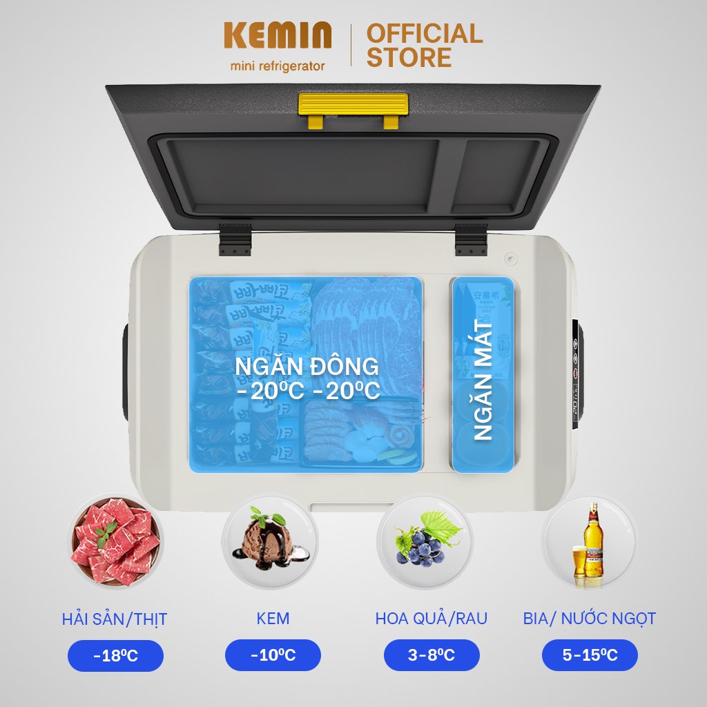 MÔ TẢ SẢN PHẨM Đến từ thương hiệu Kemin nổi tiếng về điện tử điện lạnh, Kemin K15 là chiếc tủ lạnh di động cao cấp mà bạn luôn tìm kiếm cho mỗi chuyến đi của gia đình. Với thiết kế cao cấp, tủ lạnh di động Kemin K15 mang đến khả năng sử dụng linh hoạt, vận hành vô cùng mạnh mẽ có thể làm lạnh đến -20°C, phù hợp sử dụng khi đi du lịch, dã ngoại hay vui chơi ngoài trời, giúp giữ lạnh, tươi sống thực phẩm, phục vụ nhu cầu ăn uống, ngoài ra với bộ Adapter đổi nguồn tặng kèm bạn có thể sử dụng nó trong gia đình với mọi công năng như một chiếc tủ lạnh thông thường. THÔNG SỐ KỸ THUẬT – Thương hiệu: Kemin – Dung tích: 15 lít – Phạm vi nhiệt độ: -20 ℃ đến + 20 ℃ – Kích thước (Dài x Rộng x Cao): 595 x 377 x 292mm – Khối Lượng: 9.2 kg – Lượng điện năng trung bình tiêu hao: 45W – Tiêu hao năng lượng: 0,2kw/24h – Nguồn điện: DC 12V/24V (trên oto) hoặc qua Bộ chuyển đổi dòng điện AC 220V (Adaptor) tặng kèm ĐẶC ĐIỂM NỔI BẬT – Tủ có thể làm đá, làm kem, làm mát đồ uống, cafe, thức ăn, hoa quả, bảo quản đồ ăn & sữa cho bé, với nhiệt độ làm lạnh đến -20 độ C – Tủ có vỏ nhựa cứng hoàn toàn cách nhiệt, chống dò gỉ, chống rung, chống va đập