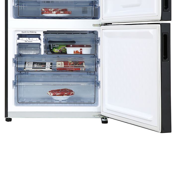 Thiết kế sang trọng, kiểu dáng hiện đại, nhỏ gọn Tủ lạnh LG Inverter 374 lít GN-D372BLA sở hữu kiểu dáng thon gọn, gam màu đen sang trọng kết hợp với mặt cửa tủ là