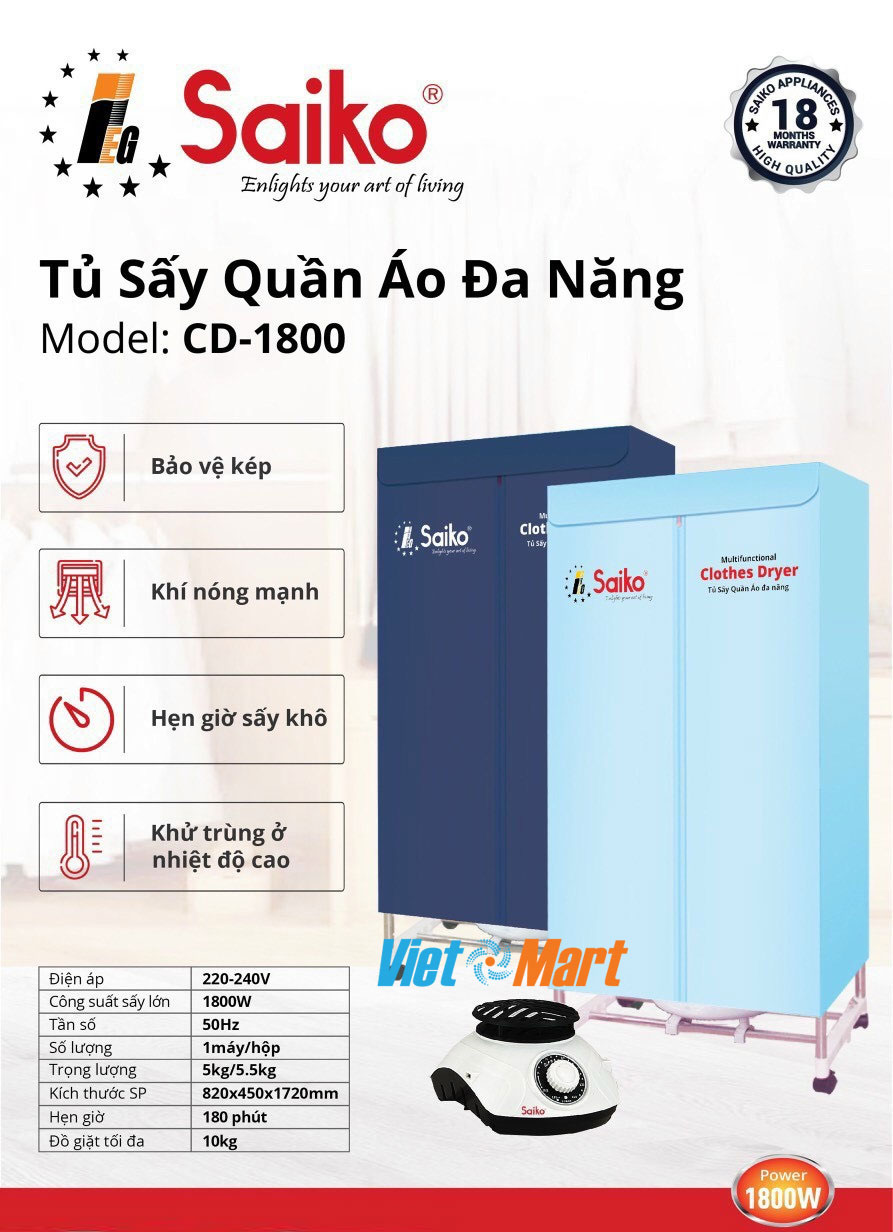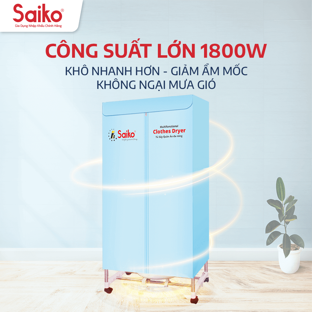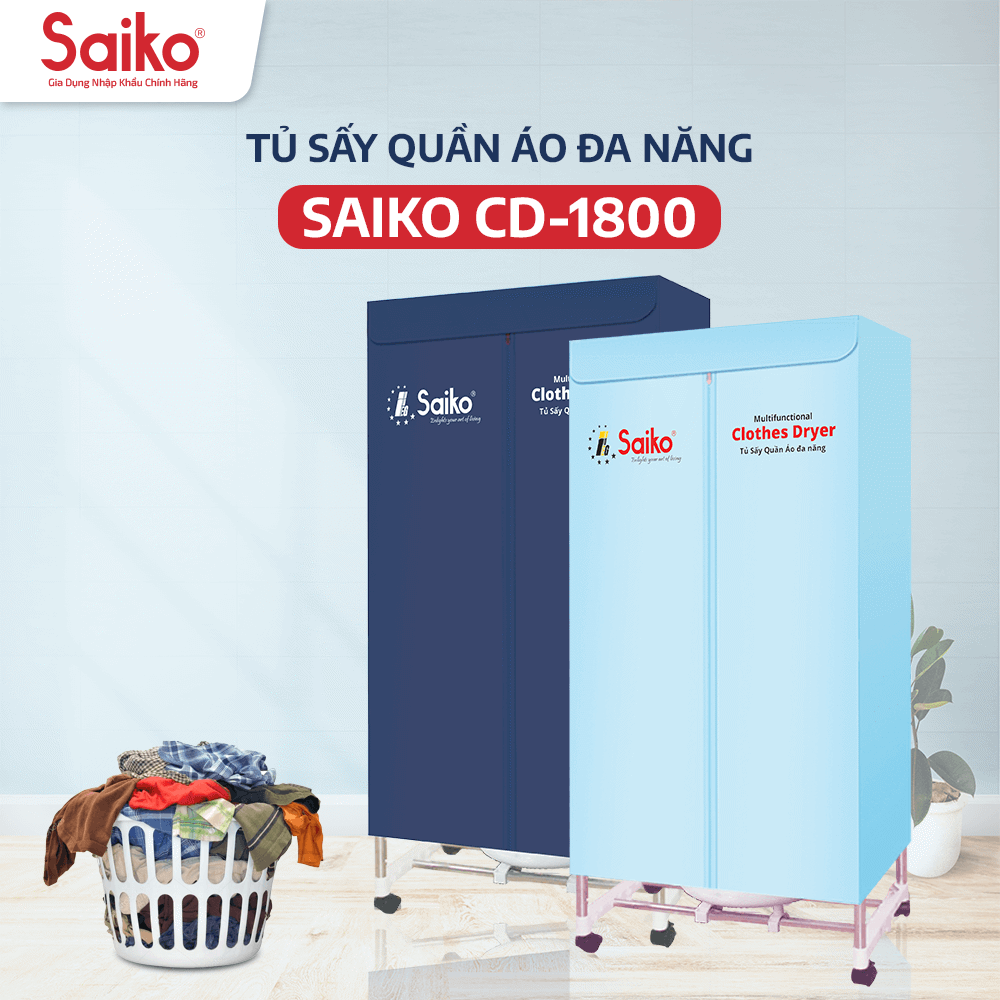 Tủ Sấy Quần Áo Đa Năng Saiko CD-1800 - Hàng Chính Hãng - Bảo Hành 12 Tháng