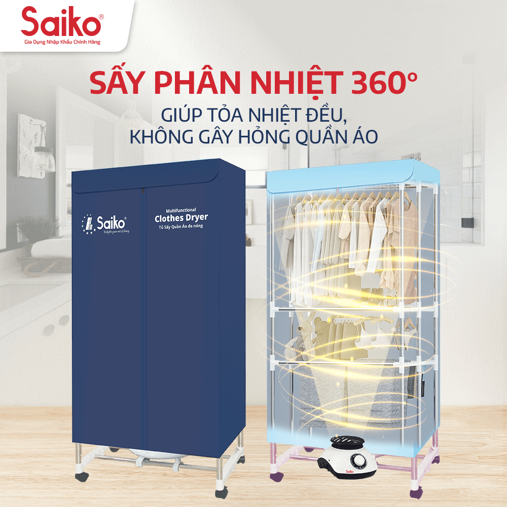 Sấy Khô Nhanh Chóng, Đảm Bảo Quần Áo Luôn Thơm Mát và Khô Rộng Cả Mùa Mưa - Tủ Sấy Quần Áo Đa Năng Saiko CD-1900 Gia đình từ 2-4 người luôn đặt ra câu