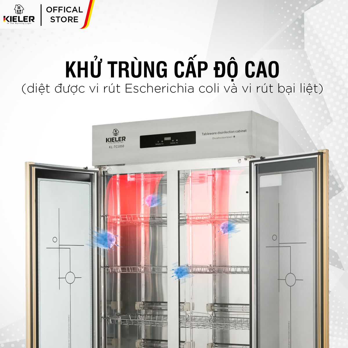 - Tên sản phẩm: Tủ tiệt trùng cảm ứng Kieler KL-TC1050 khử trùng liên tục 24 giờ bằng ozone và tia UV dùng cho hộ gia đình, chung cư
