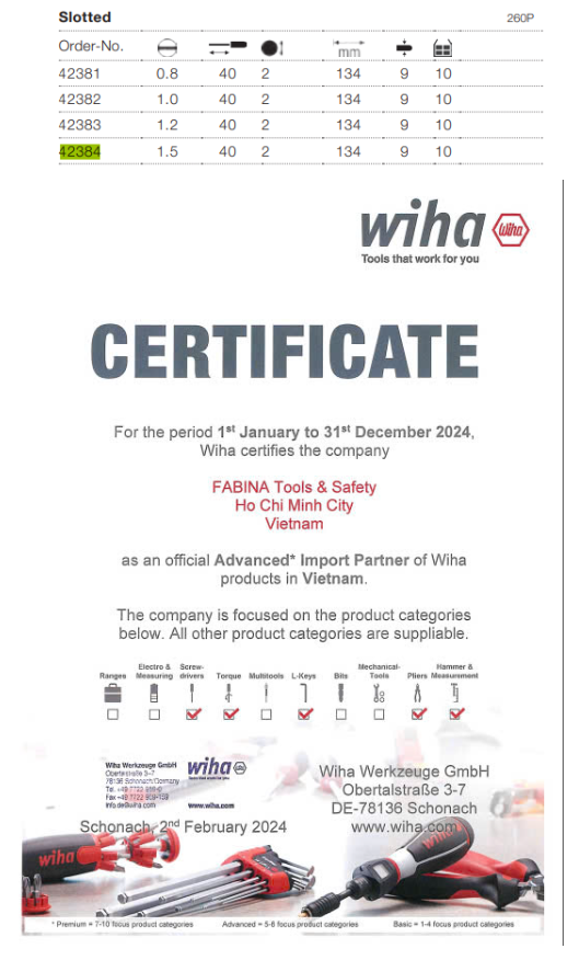 ✨Tua vít đầu dẹp Wiha 42384 (1.5 x 40 x 134)