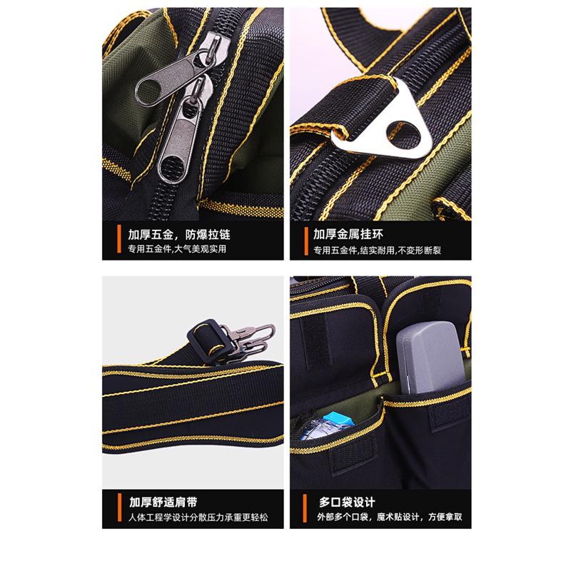Mua tại TiktokTúi đựng đồ nghề kỹ thuật đủ kích thước To - Vừa - Nhỏ thích hợp đựng đồ nghề kỹ thuật, dụng cụ sửa chữa gia đình: Búa, khoan, tuavit, kéo... Túi được làm từ chất liệu sợi đặc biệt 3 lớp chống vật nhọn đâm thủng, chống thấm nước giúp bảo vệ dụng cụ khi trời mưa. Đế nhựa cứng siêu bền, đàn hồi tốt và chống va đập cho thời gian sử dụng lâu dài. Được thiết kế với 1 ngăn lớn kèm 8 ngăn nhỏ bên trong và 8 ngăn phụ bên ngoài giúp sắp xếp đồ đạc rât dễ dàng và thoải mái. _ Quai nắm bằng nhựa cứng, cầm chắc và êm tay, chịu tải trọng 100kg. Kích thước: Cỡ To 47x23x34 Cỡ Vừa 40x21x28 Cỡ Nhỏ 36x20x26