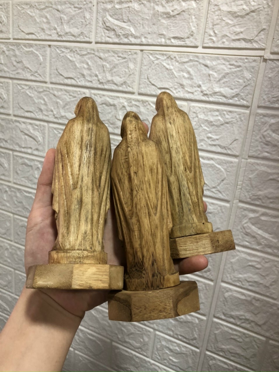 _ Bộ tượng tam không được làm bằng chất liệu gỗ bách xanh thơm phức liền khối thơm phức tự nhiên 100% _ Kt cao 13×9×8cm _ Bộ tượng tam không được điêu khắc trạm