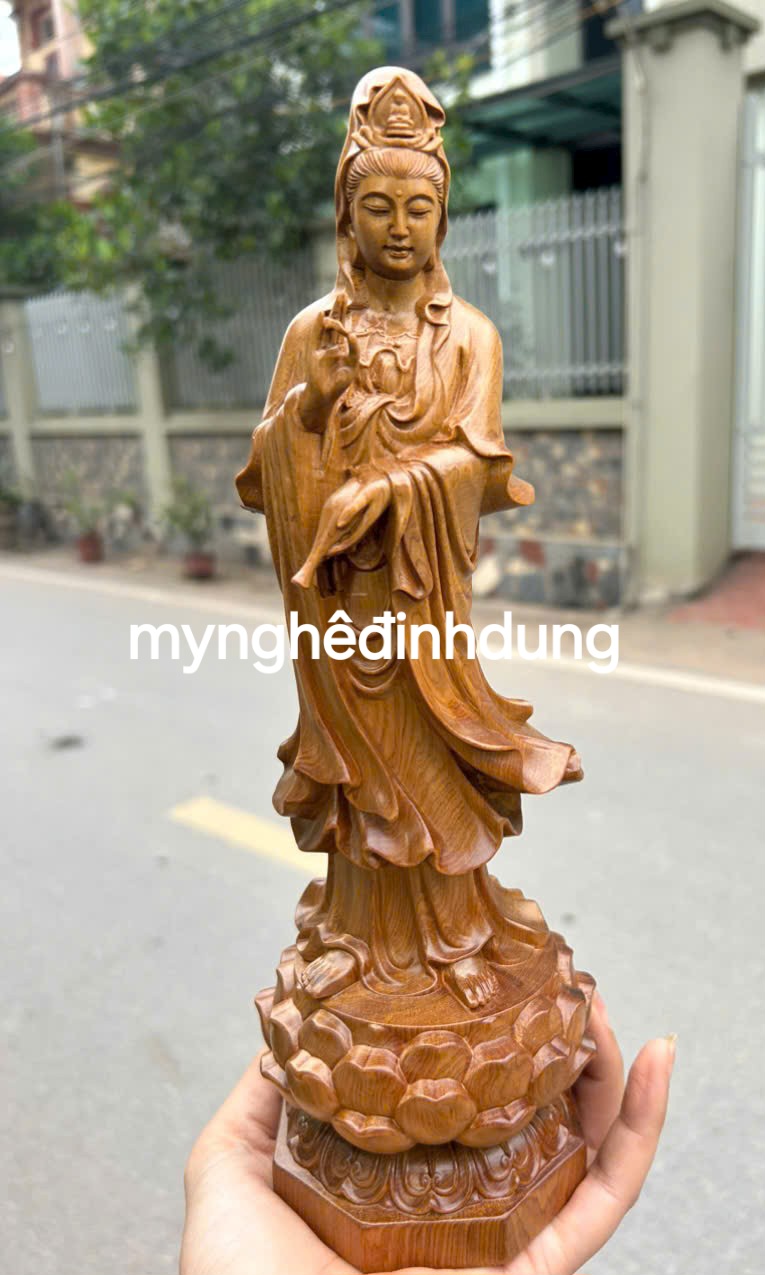 ✨Tượng phật bà quan âm bồ tát bằng gỗ bách xanh thơm nức cao 30x9cm