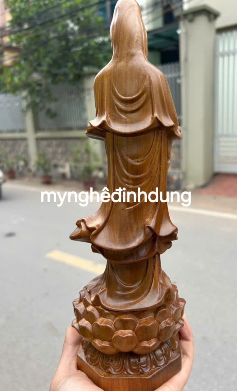 Mua tại TiktokTượng phật bà quan âm bồ tát được làm bằng chất liệu gỗ bách xanh liền khối tự nhiên 100% Kt cao 30x9x9cm _ Tượng được chạm khắc tỉ mỉ tinh xảo kỳ công.Đi hầu hết tất cả mọi chi tiết góc ngách nội dung hoa văn của tượng đều được gọt tỉa chỉnh sửa sắc nét hoàn toàn bằng tay thủ công truyền thống.