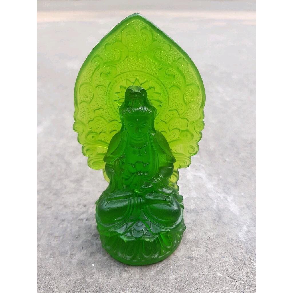 Tượng Phật Bà Quan Âm Mới Đá Lưu Ly Xanh Lá Tươi Đẹp Để Xe Hơi hoặc để bàn cao 12cm đk 7cm đế 5cm Hợp Mệnh Hỏa Mệnh Mộc ạ *** Tượng Phật Bà