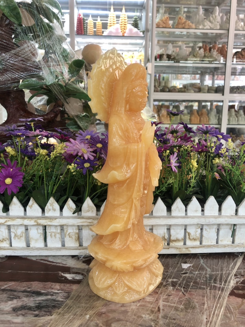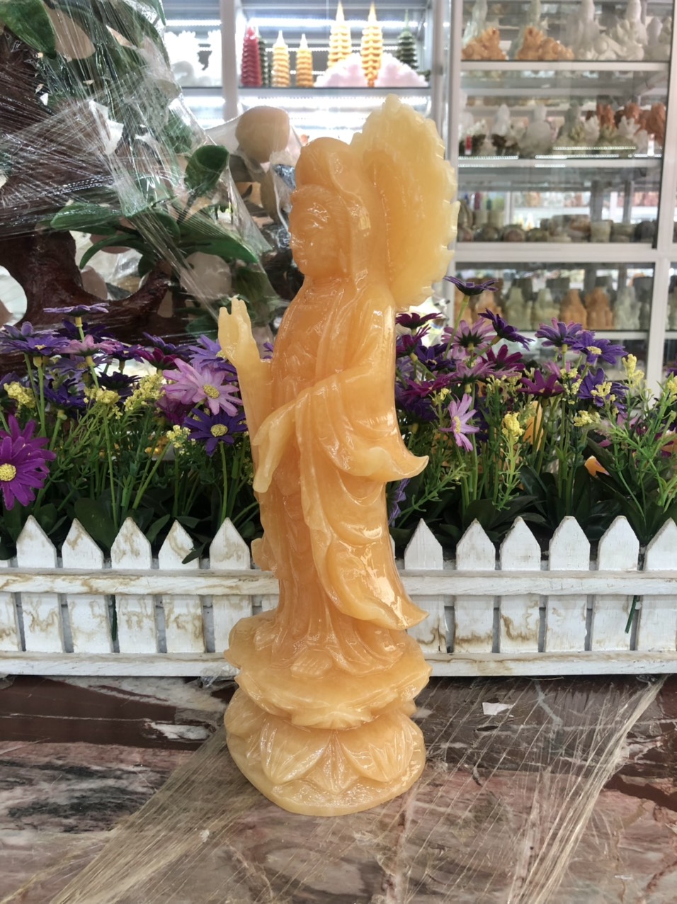 Tượng Phật Quan Âm Đá Lưu Ly Vàng Mới để trong xe hơi hoặc để bàn cao 12cm đk 7cm đế 5cm Mệnh Kim mệnh Thổ mệnh Thủy ạ *** Tượng Phật Quan Âm Đá